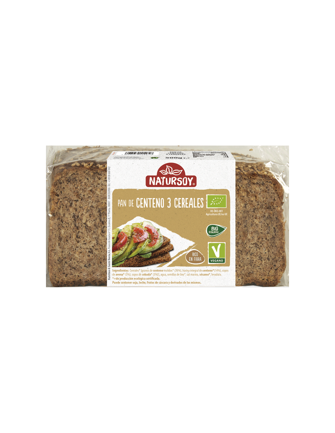 Pan centeno 3 cereales ECO, 500 g. Natursoy