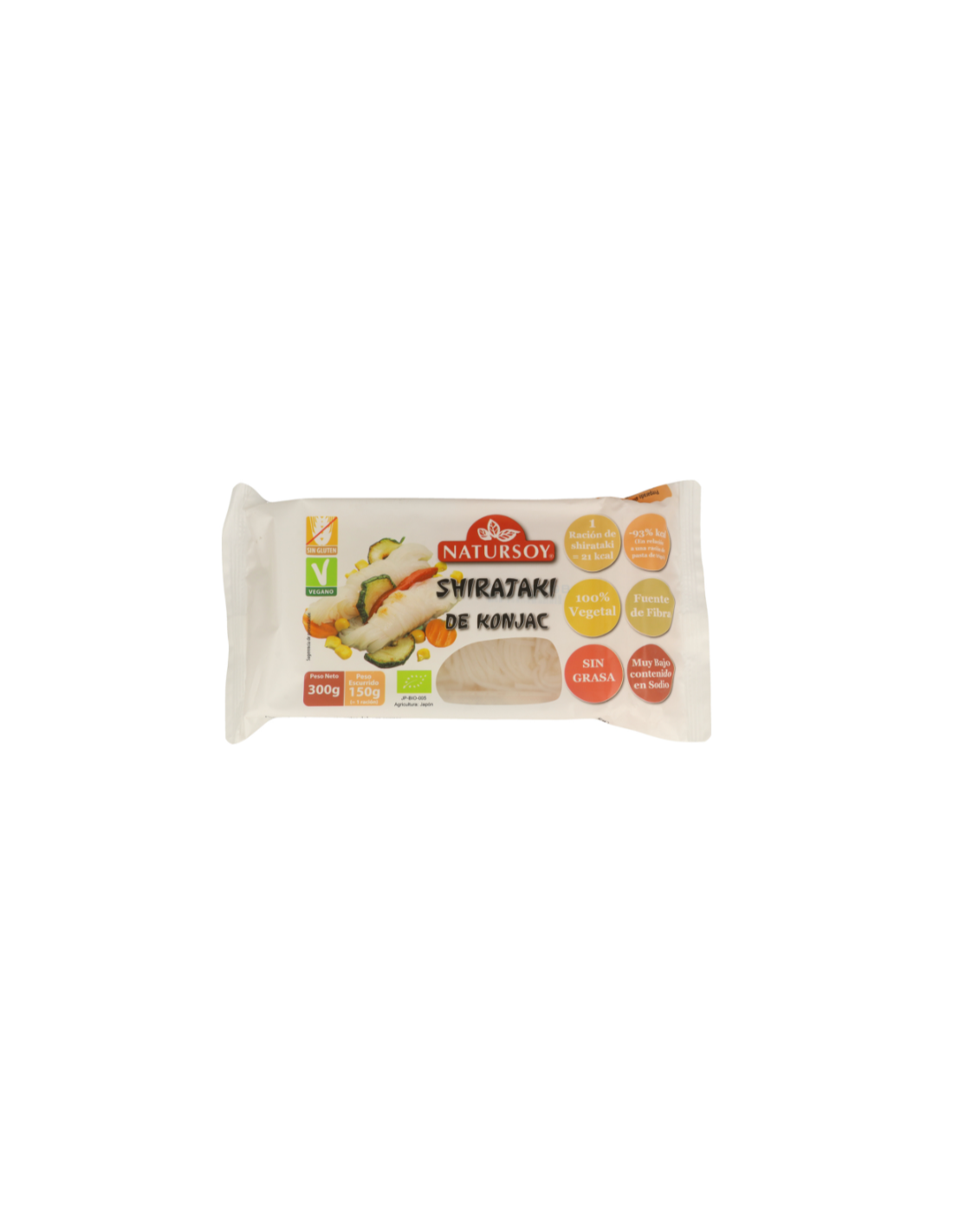 El Shirataki Konjac Bio de Natursoy es consumida en Japón y cada vez mas reconocida en Occidente. Son fideos con un sabor neutro y son muy fácil de preparar. Son saciantes, sustituyen las féculas (pastas de cereales, arroz, patatas,..)