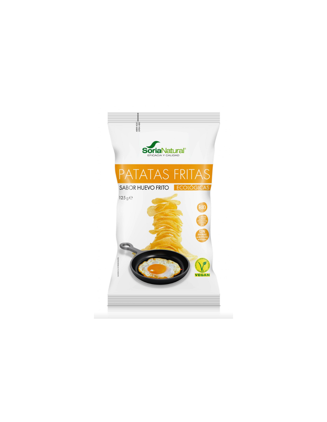 Las Patatas Fritas Ecológicas Sabor Huevo Frito están elaboradas siguiendo una receta cien por cien natural, con patatas de proximidad y aceite de oliva virgen extra.