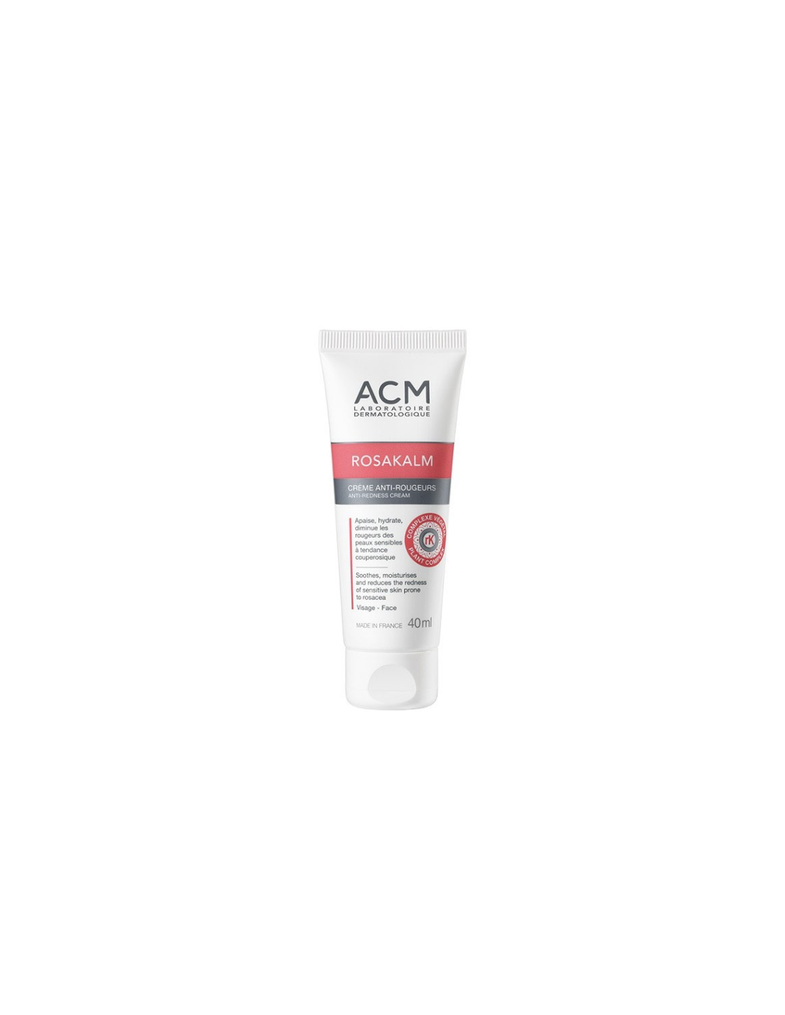 ACM LABORATOIRESEsta crema alivia la sensación de tirantez y sobrecalentamiento de las pieles sensibles y reactivas con tendencia a las rojeces de forma inmediata y duradera. La crema antirojeces Rosakalm reduce las rojeces y mejora la microcirculación cutánea, gracias al extracto de Ruscus y su complejo vegetal calmante antioxidante RK. Calma la sensación de calor y tirantez a la vez que hidrata y protege de las agresiones externas. La crema camufla inmediatamente las rojeces y unifica la tez. Textura cómoda y no grasa. Aporta una agradable sensación de frescor en la aplicación. buena base de maquillaje.