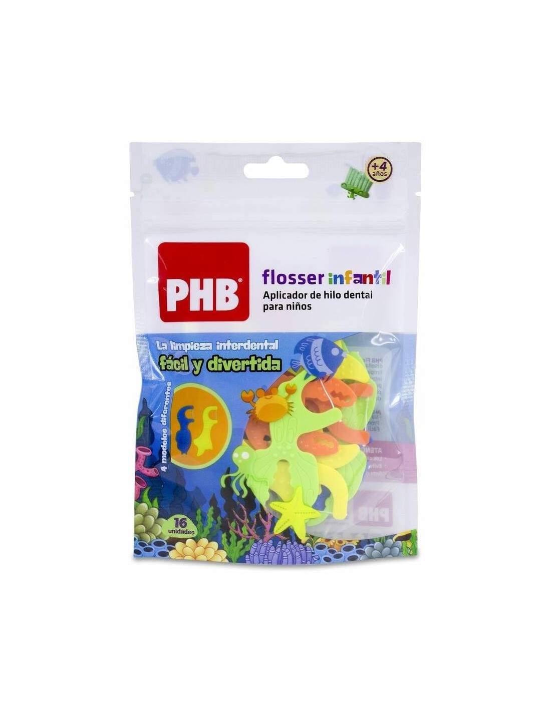 PHBAplicador de hilo dental diseñado para proporcionar una limpieza más fácil de los espacios interdentales de los más pequeños (a partir de 4 años). Ayuda a prevenir la caries interdental y la inflamación de las encías. Incluye 4 modelos diferentes para hacer más divertida la limpieza interdental.