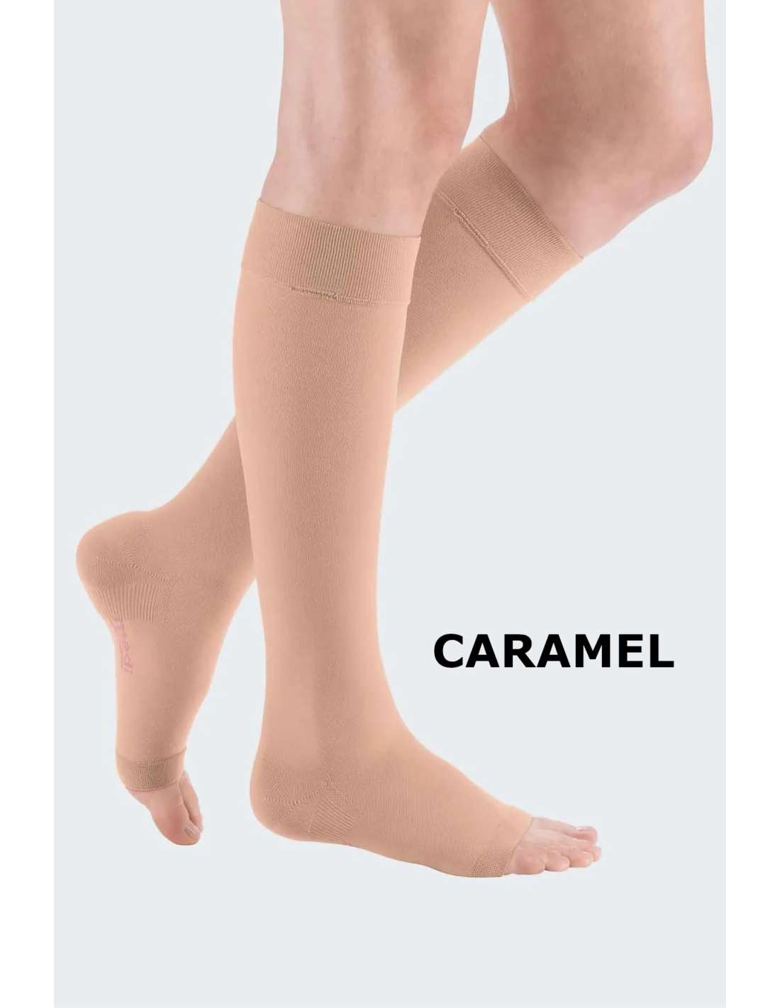 MEDIVENMediven Plus AD es una media de compresión médica de punto circular con un aspecto opaco. Disimula las venas varicosas y las arañas vasculares y es cómodo de llevar incluso con muslos fuertes. Debido a la resistencia del material, el ajuste y las propiedades del producto, se recomienda Mediven Plus AD para mujeres y hombres de peso normal a con sobrepeso con hinchazón de piernas leve a grave y tejido conjuntivo blando.