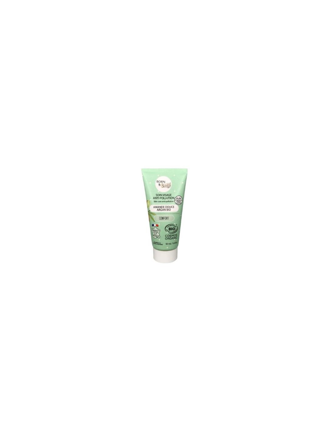BORN TO BIOEste cuidado facial antipolución protege la epidermis contra las agresiones externas, especialmente la contaminación. Elaborado con ingredientes de origen natural, este producto facial previene el envejecimiento prematuro de la piel. Su textura cremosa ofrece una agradable sensación para la piel. Cosmos Organic.
