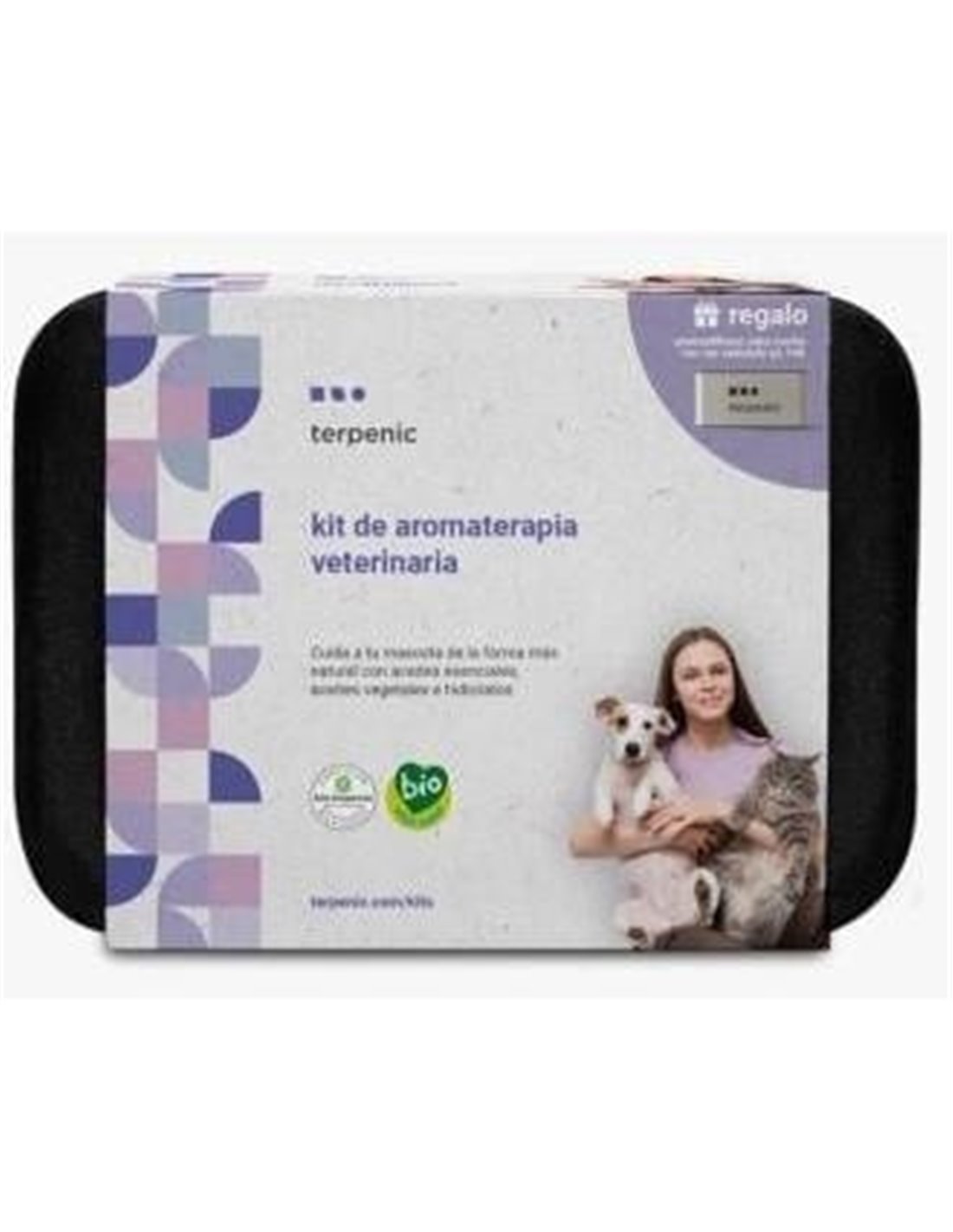 Kit de aromaterapia veterinaria para elaborar dos sprays repelentes, uno para perros y otro para gatos, dos bálsamos, uno protector y reparador para almohadillas y trufa y otro para aplicar en pequeñas heridas, arañazos o irritaciones. También, una solución limpiadora y, dos sinergias relax, una para difusión atmosférica y otra de aplicación tópica, que acompañan a atravesar los momentos de estrés junto a las mascotas, de la manera más saludable, pura y natural.\ Contenido:\ 4 aceites esenciales:\ -Árbol del té BIO\ -Citronela de java BIO\ -Verbena exótica BIO\ - Lavanda BIO\ 1 base vegetal:\ -Albaricoque\ 2 hidrolatos:\ - Árbol del té BIO\ -Geranio BIO\ 2 Mantecas:\ -Karité BIO\ Materiales:\ - 4 etiquetas\ -2 Envases spray de 50 ml\ Guía práctica del kit con cápsulas de video para utilizar los productos de manera segura para los animales, dueños y el medio ambiente.\ Fichas técnicas descargables de los 4 aceites esenciales, los 2 hidrolatos y los 2 bases vegetales, en las cuales se explican sus propiedades, así como consejos prácticos de uso.\ Aroma difusor Run run para el coche de regalo.