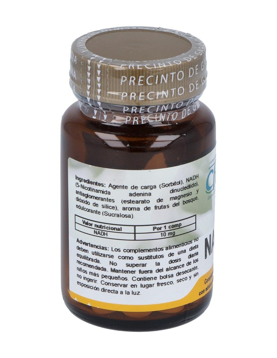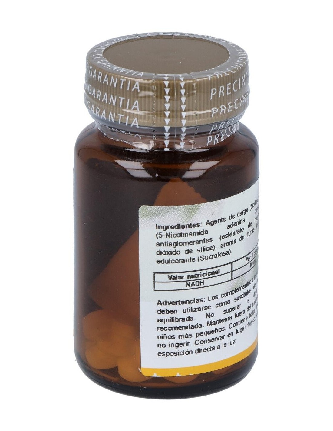 Composición por comprimido:10 mg de NADH (5-nicotinamida adenina dinucleótido). Modo de empleo:Tomar de 5 a 15 mg de NADH al día, especialmente 1/2 horas antes del desayuno o de las principales comidas. Presentación:Bote de 30 comprimidos sublinguales.