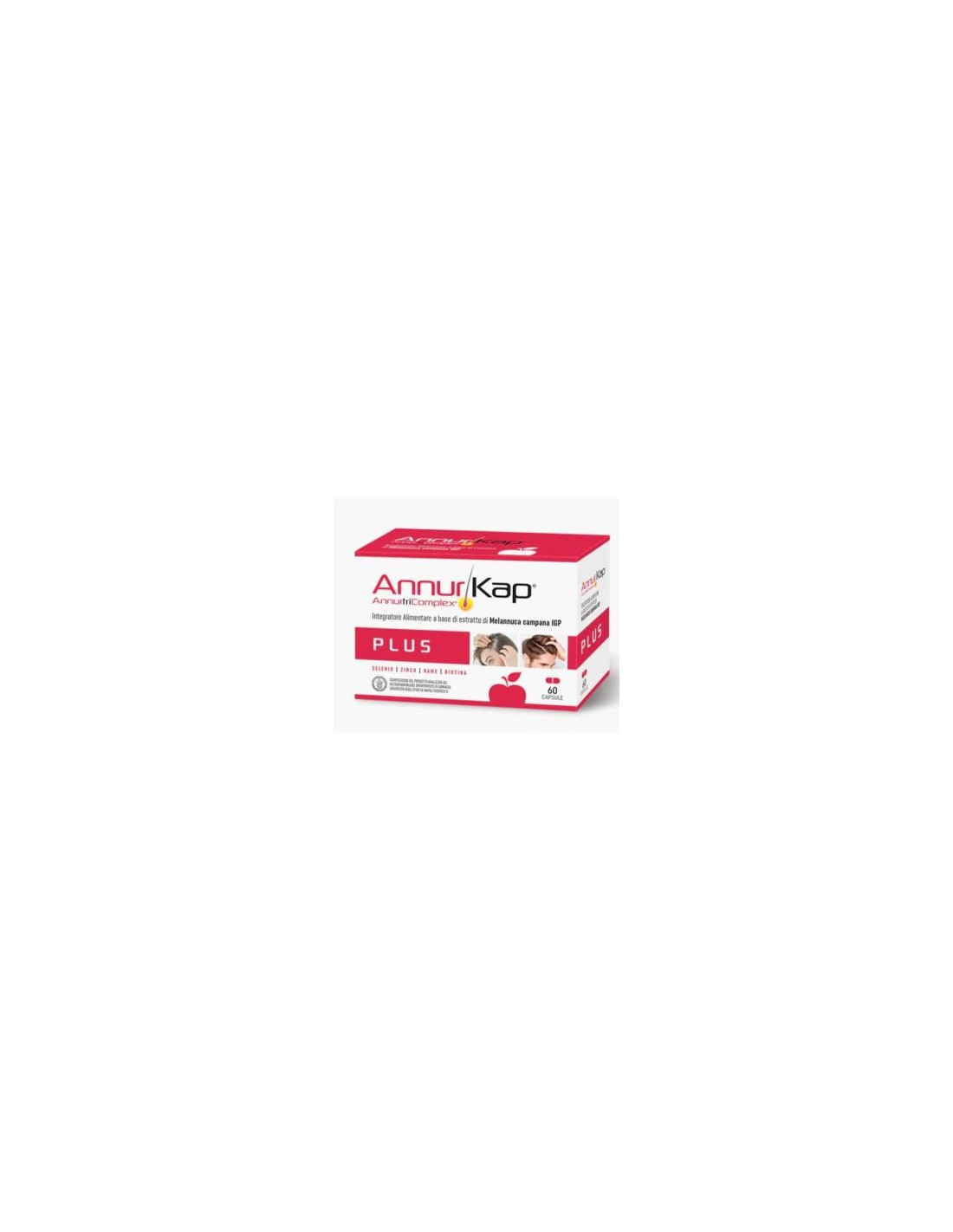 ANNURKAPComplemento alimenticio a base de AnnutriComplex® Plus, un fitocomplejo de Melannurca titulado en Procianidina B2 enriquecido en Cobre, Biotina y Selenio a partir de L-Selenometionina, con Zinc. Melannurca es una variedad de carne IGP de Campania con un alto contenido en procianidinas. La biotina contribuye a mantener el cabello en condiciones normales. El selenio y el zinc ayudan a proteger a las células del daño oxidativo. Apto para veganos.