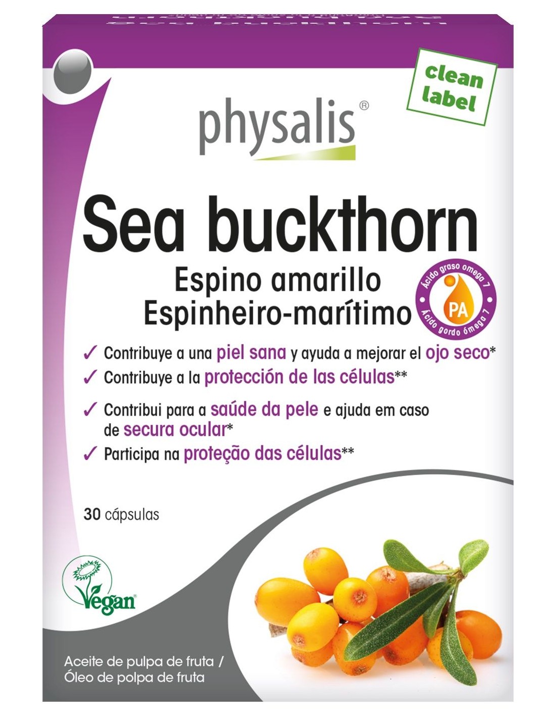 Physalis Sea buckthorn contiene el aceite de origen biológico obtenido de las bayas de color naranja brillante y ácidas que crecen en el arbusto del e