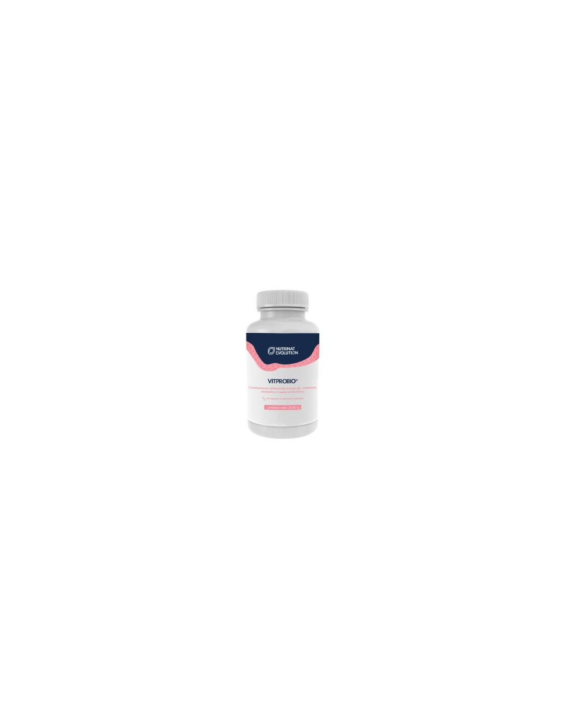 Complemento alimenticio a base de vitaminas, minerales y cepas probióticas, en cápsulas de liberación retardada. Apto para vegetarianos y veganos.