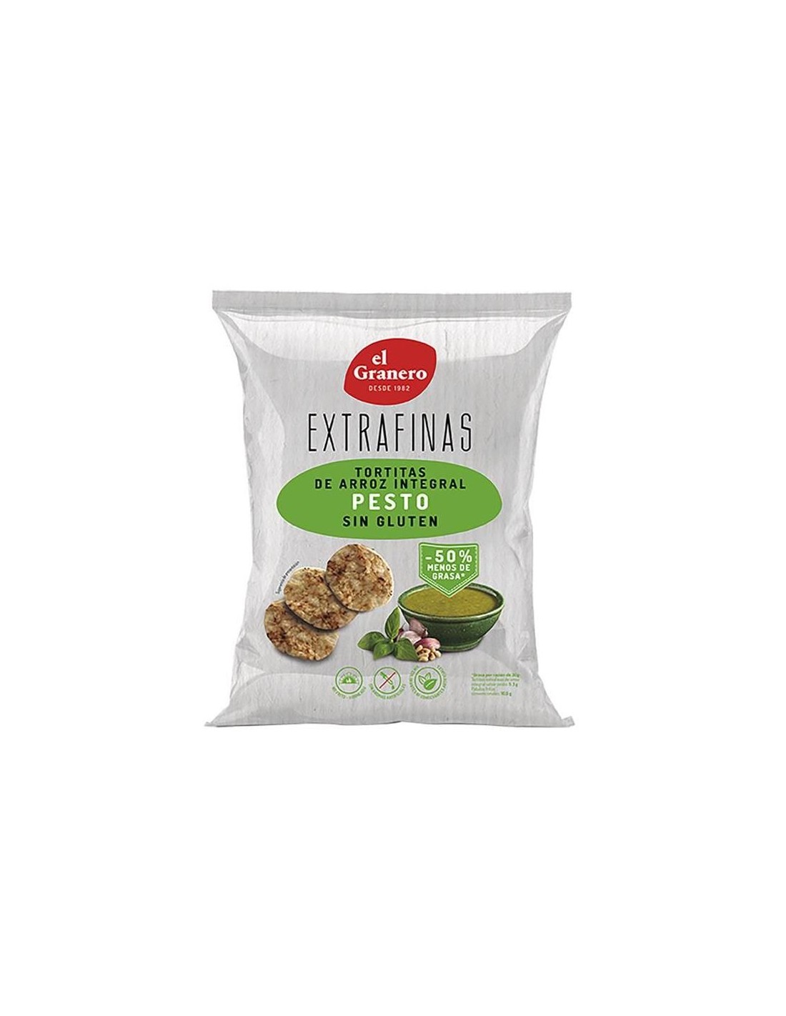 Extrafinas Tortitas De Arroz Integral Pesto Sin Gluten, 60 G de El Granero Integral