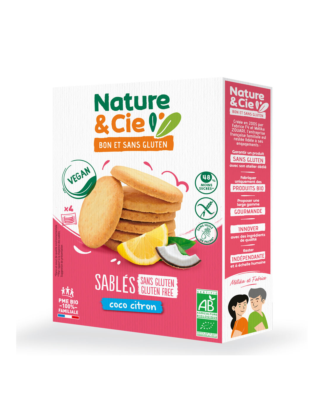 Ingredientes:Harina de arroz*, margarina* (aceite de girasol* , agua, manteca de cacao*, emulgente: lecitina de girasol*, zumo de limón* concentrado), harina precocinada de arroz*, azucar de caña*, fécula de patata*, harina de mijo*, glucosa en polvo*, nuez de coco rallado* 3 %, zumo de limón* 2%, aroma natural de coco* 0,8%, fibra de acacia*,glasificante: carbonato de Amonio, espesante: goma de guar*, sal, aroma natural de limón* 0,3%. (*)=De cultivo ecológico.Valor nutricional por 100 gramos: