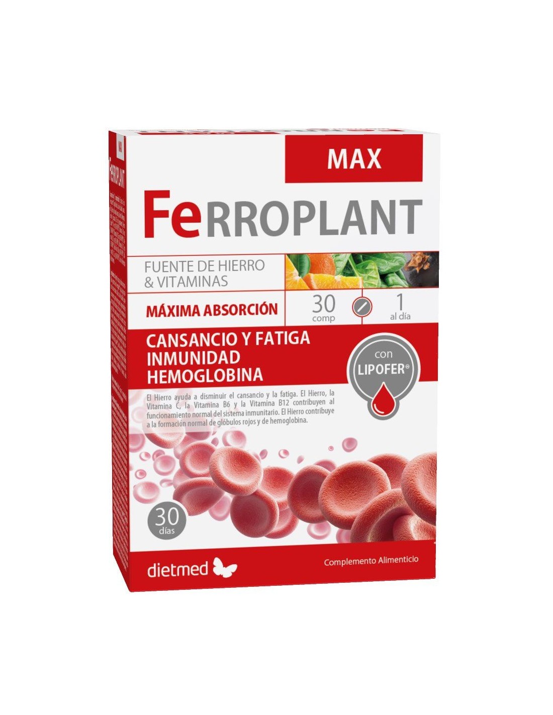 Ferroplant Max 30 comprimidos Dietmed es un suplemento diseñado para personas que buscan apoyar sus niveles de hierro de manera práctica y controlada. Es adecuado para quienes desean complementar su dieta con un aporte específico de este mineral esencial.