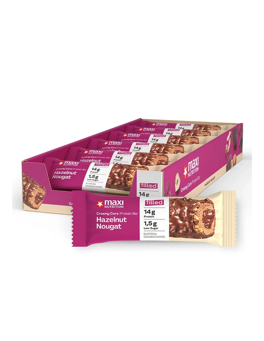 MAXINUTRITIONCreamy Core Bars Hazelnut Nougat 45G X 12Ud de Maxinutrition: Sabor y Nutrición en Cada Bocado