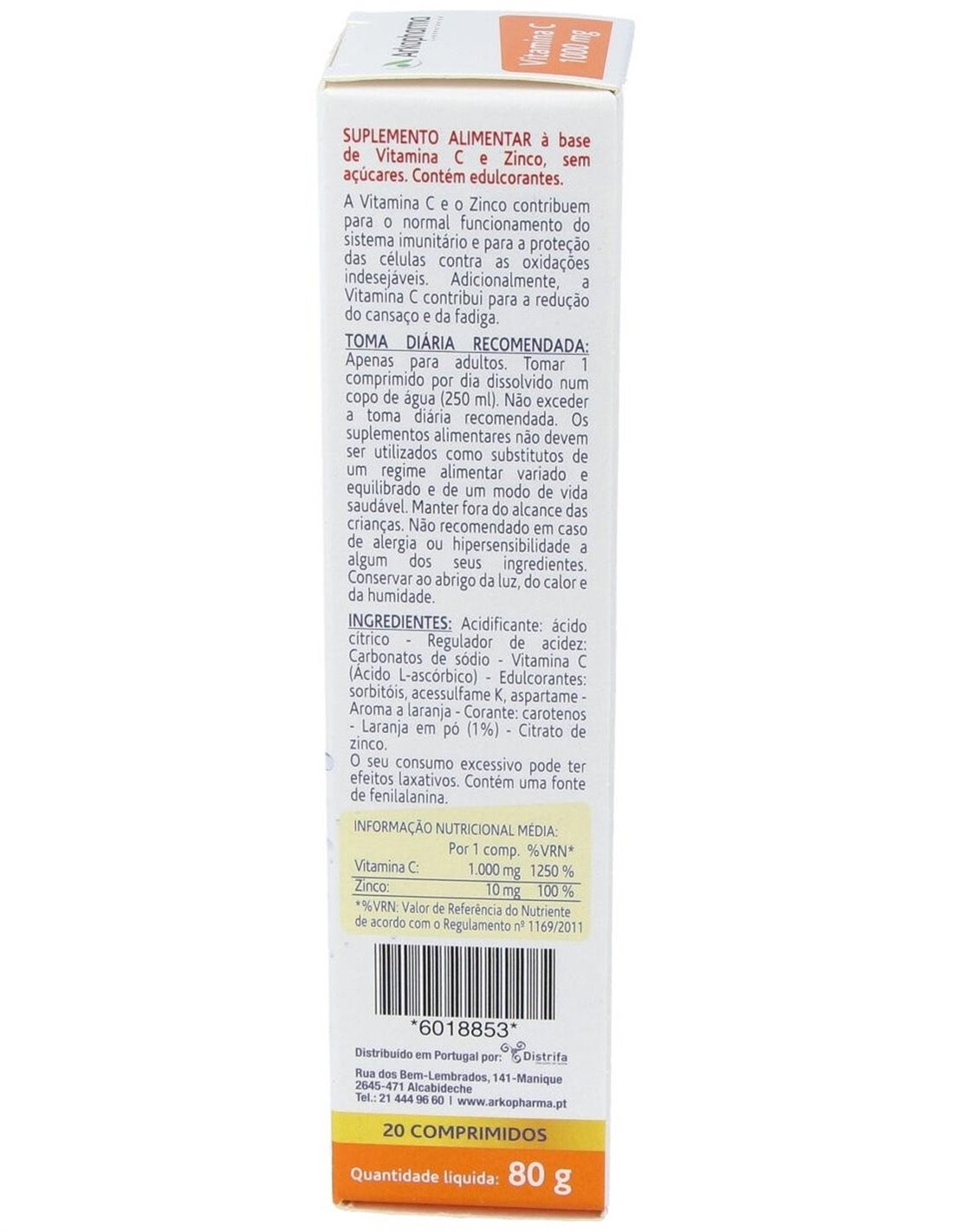 La Vitamina C y el Zinc contribuyen al funcionamiento normal del sistema inmunitario y a la protección de las células frente al daño oxidativo. La Vitamina C además, ayuda a disminuir el cansancio y la fatiga. Sabor a naranja.