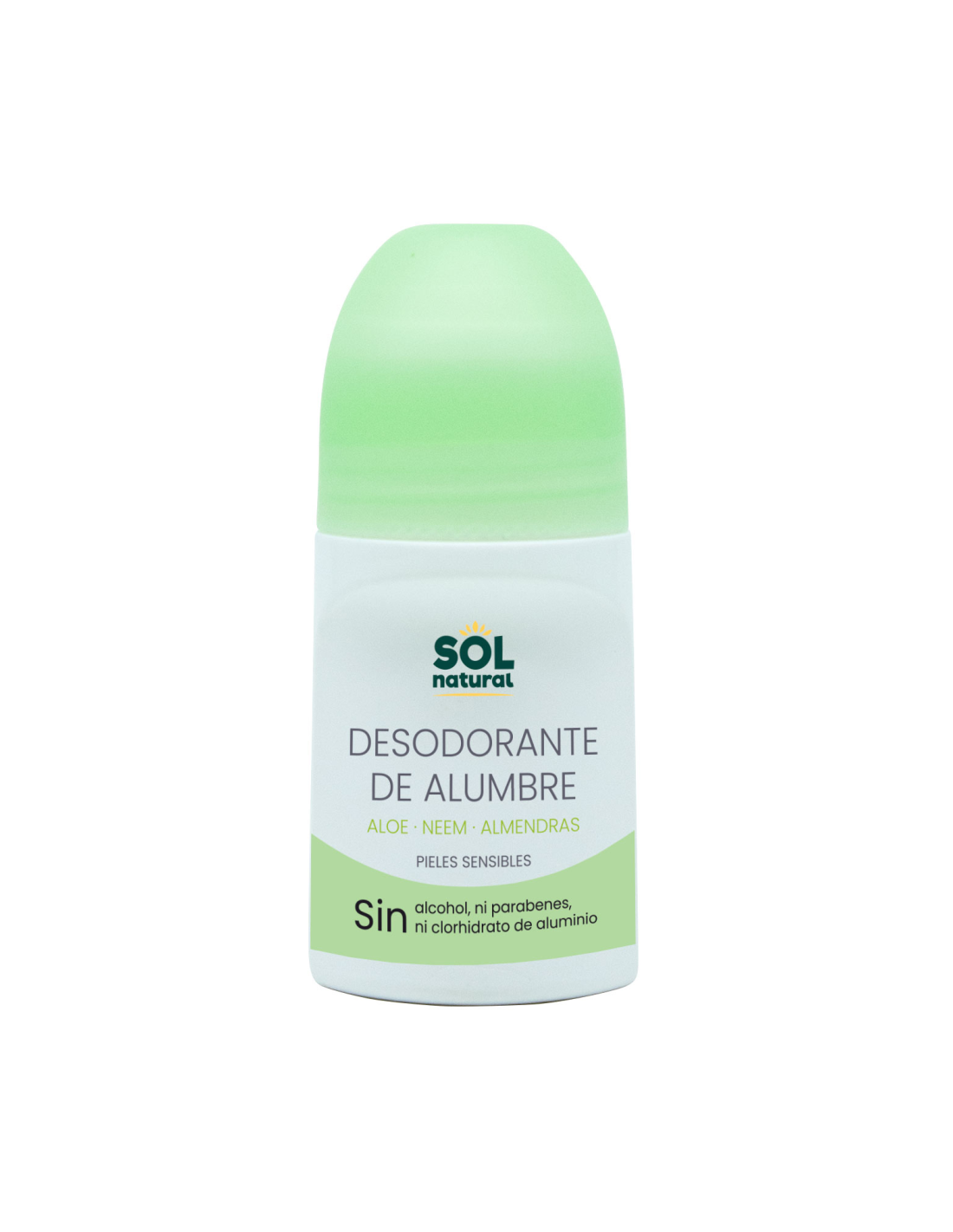 SOLNATURALDesodorante líquido de alumbre aloe y neem para pieles sensibles. Sin parabenos, alcohol ni clorhidrato de aluminio.