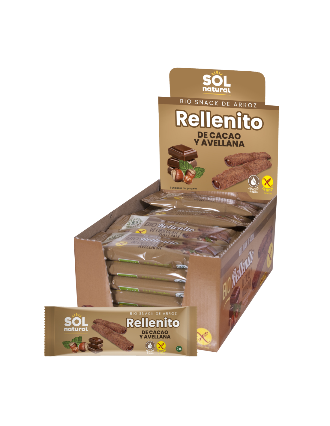 ¡Añade Ya el Pack 24 Uds. Rellenito De Choco Y Avellanas S/Gluten Bio 24 x 25g de Solnatural a tu carrito!
