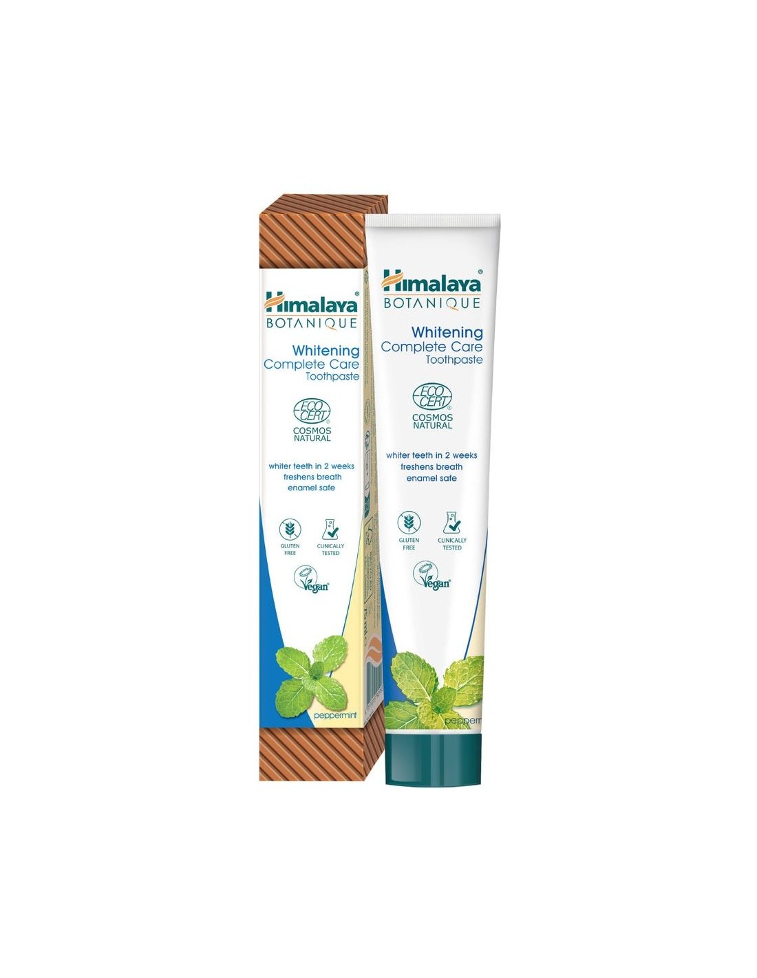 La pasta de dientes Blanqueadora Cuidado Total de Himalaya Botanique contiene las enzimas vegetales de la Bromelina y la Papaína, y las combina con el poder del Neem, el Xilitol y el efecto refrescante de la Hierbabuena para mejorar la salud bucal y conseguir una sonrisa más blanca en 2 semanas.¡Descubra nuestra línea de pastas dentífricas Himalaya Botanique con superingredientes a base de hierbas y plantas! Una combinación de sabiduría ancestral e investigación científica con ingredientes suaves y probados a lo largo de los años. Sin fluoruro, SLS, gluten, ni colorantes ni aromatizantes artificiales. Todos los productos son veganos y con ingredientes orgánicos con certificado de Ecocert.Propiedades: