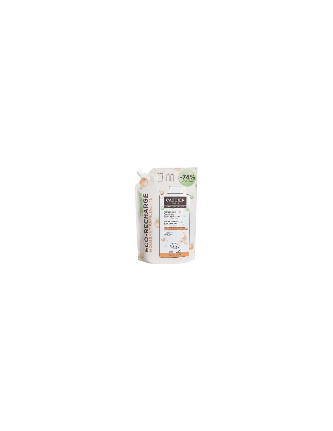 Recarga Gel Ducha Y Champú Familiar Sin Sulfatos 1L de Cattier