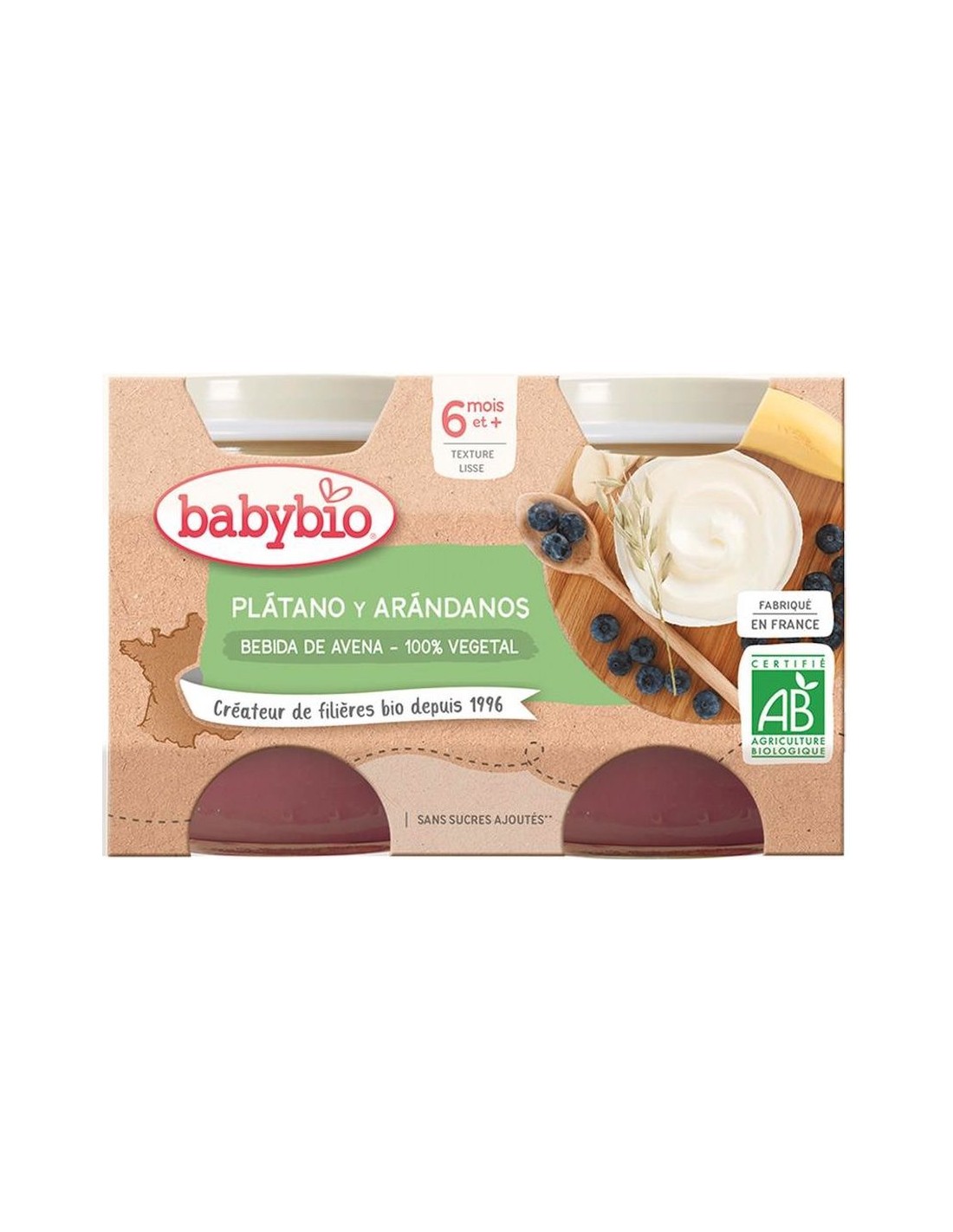 Yogur Avena Platano Arandanos 2X130Gr. Bio de Babybio