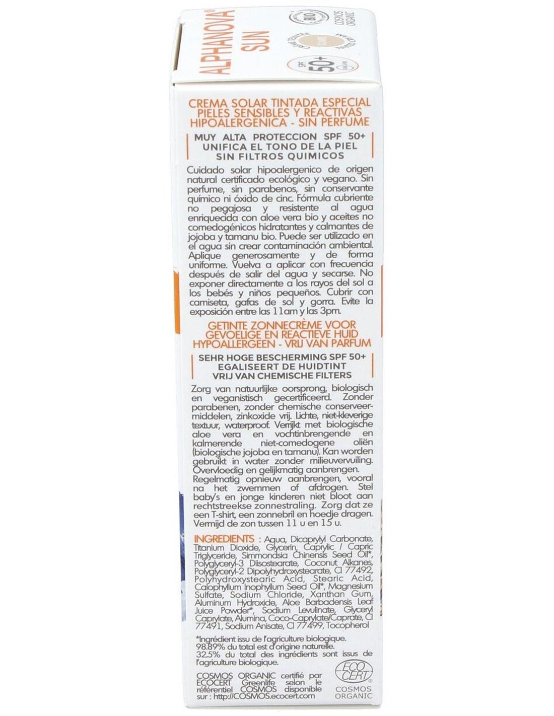 Aqua / Water, Dicaprylyl Carbonate, Titanium Dioxide, Glycerin, Simmondsia Chinensis (Jojoba) Seed Oil*, Coconut Alkanes, Polyglyceryl-3 Polyricinoleate, Sorbitan Isostearate, Polyglyceryl-3 Diisostearate, Aluminum Hydroxide, Stearic Acid, Magnesium Sulfate, Aloe Barbadensis Leaf Juice Powder*, Polyglyceryl-6 Stearate, Sodium Levulinate, Glyceryl Caprylate, Coco-Caprylate/Caprate, Sodium Anisate, Xanthan Gum, Polyglyceryl-6 Behenate, Tocopherol.