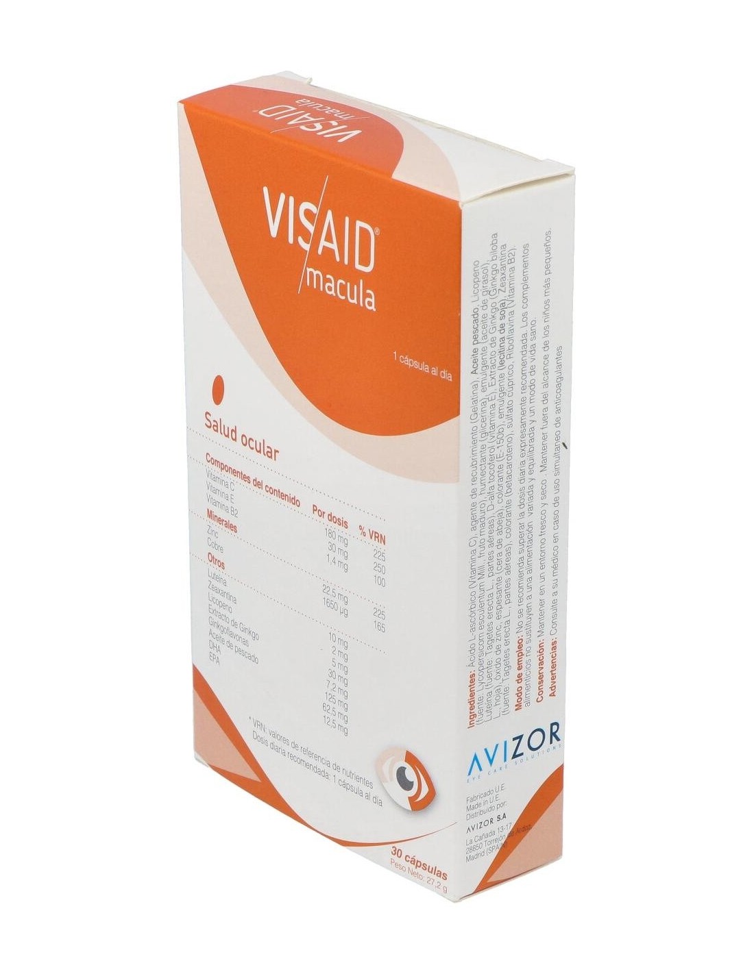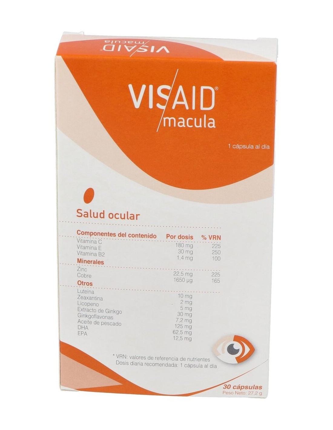 Descubre Visaid Macula 30Cap. de Visaid, un suplemento increíble diseñado para cuidar y proteger la salud visual de manera instantánea. Su fórmula avanzada actúa directamente en la mácula, la parte del ojo responsable de la visión central, ayudando a mantener una vista clara y nítida día tras día.
