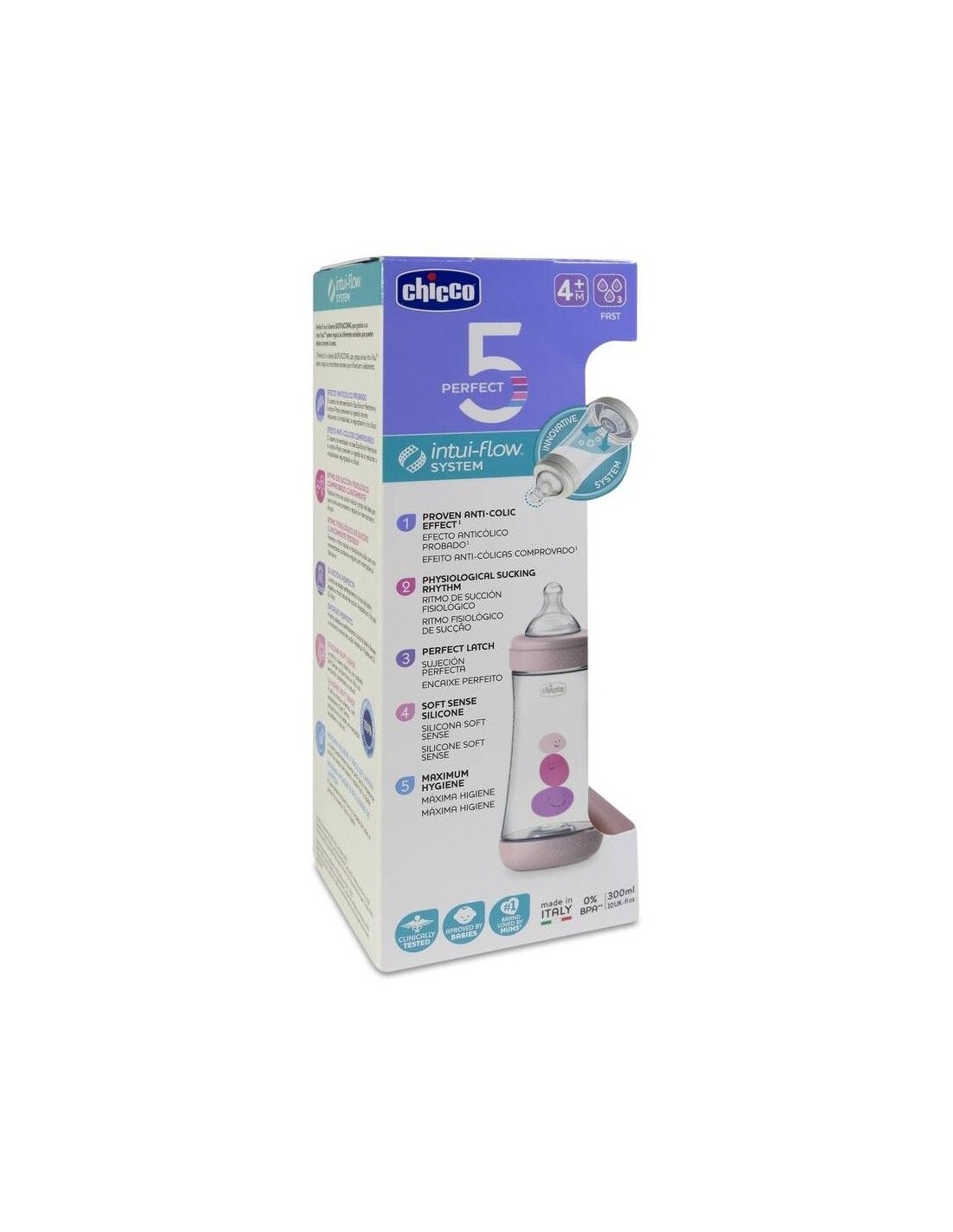 Biberon Perfect5 4 M + 300 Ml Sil Rosa** de Chicco