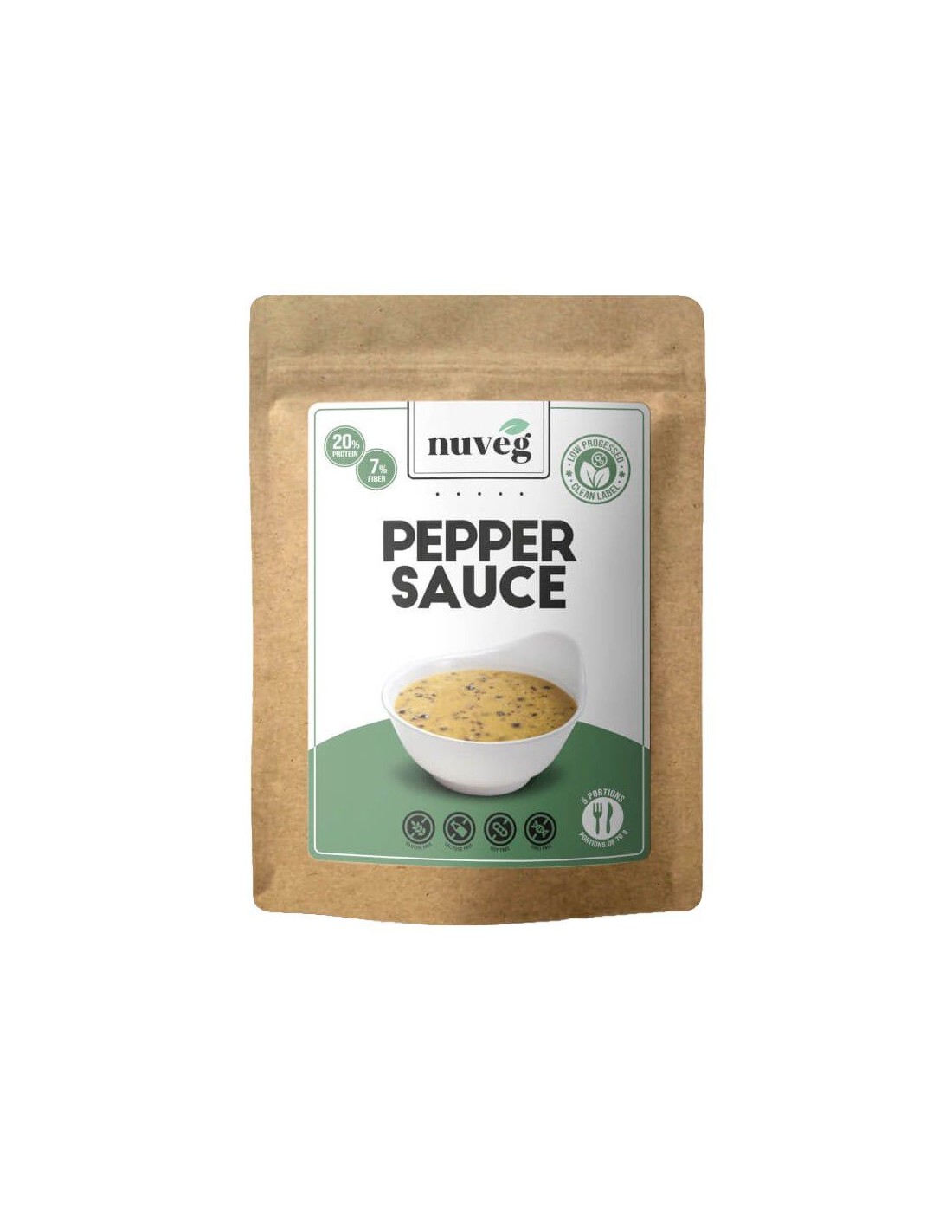 Nuveg ofrece soluciones deshidratadas «plant based», ricas en nutrientes, con certificación ECO y Clean Label, y destinadas a diversificar la comida vegana, o de personas que sencillamente quieren comer un plato nutritivo, muy sencillos de preparar y sin aditivos de ningún tipo.La Salsa a la Pimienta de nuveg es un deshidratado que se prepara de manera fácil, mezclando el preparado en polvo con agua a punto de ebullición, y que aporta una cantidad excepcional de nutrientes en su forma biodisponible. Elevado contenido de vitaminas y minerales esenciales, así como de proteínas completas. Está compuesto principalmente por extractos de la levadura nutricional inactiva, por lo que no provocan el desarrollo de levaduras en el tracto intestinal; y que le otorga un 20% de proteínas biodisponibles con un perfil aminográmico completo, comparable con el suero láctico o la proteína de huevo.Además, es extraordinariamente rico en todas las vitaminas del grupo B: B1, B2, B3, B5, B6, B9 y la preciada B12. También aporta Vitaminas D, Zinc y Selenio.Ingredientes:Leche de coco deshidratada, Levadura nutricional inactiva (Saccharomyces cerevisiae), Cebolla deshidratada, Almidón de Yuca, Almidón de maíz, Inulina de Agave (by Oligofructine), Pimienta negra, Flor de sal, Romero en polvo, Perejil en polvo.Valor nutricional por 100 gramos: