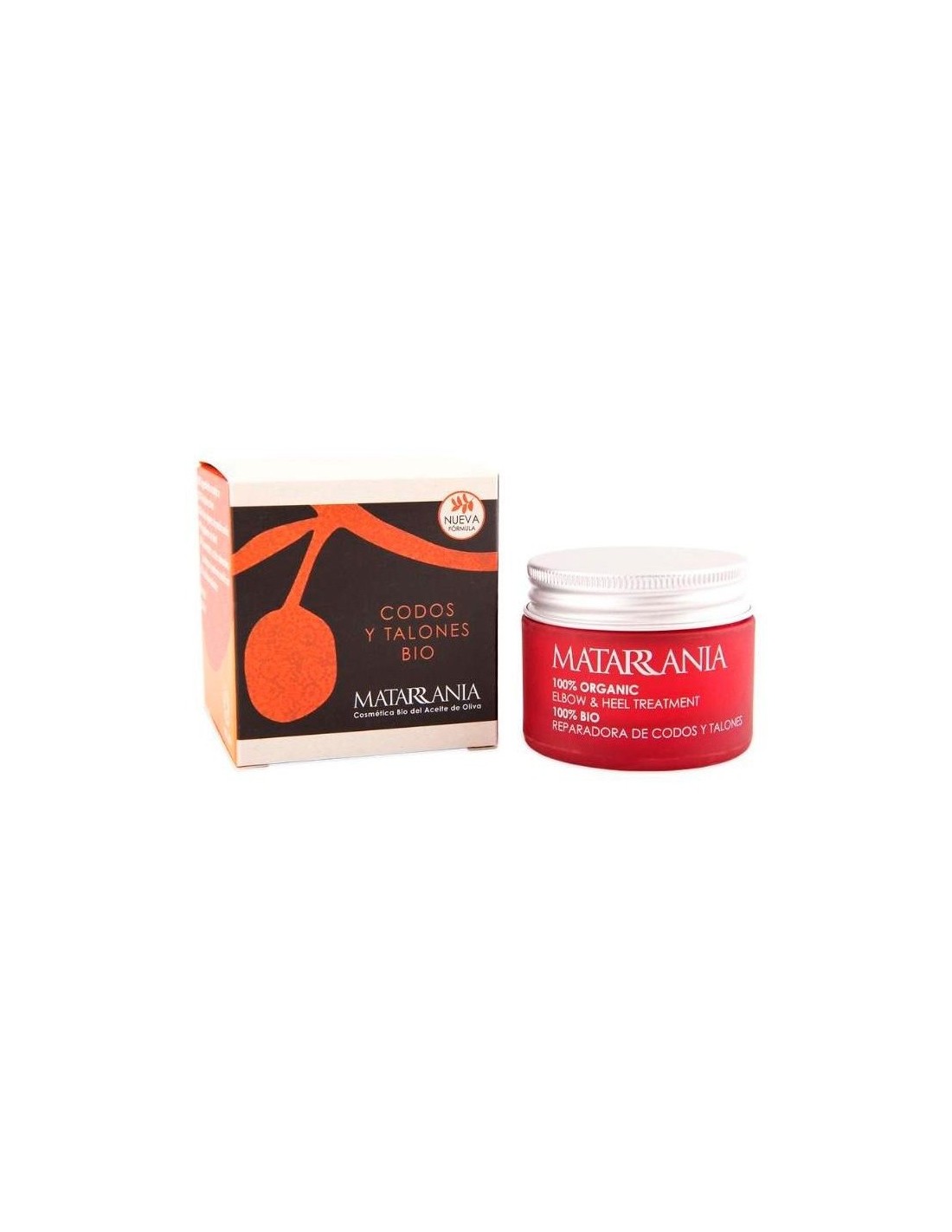 Ingredientes (INCI):Butyrospermum parkii (karité/shea) butter*, Olea europaea (oliva virgen extra/olive extra virgin) fruit oil*, Prunus amygdalus dulcis (almendras/almond) oil*, Rosmarinus officinalis (romero/rosmarinus) extract*, Thymus vulgaris (tomillo/thyme) extract*, Plantago lanceolata (llantén/plantain) leaf extract*, Lavandula officinalis (lavanda/lavender) flower oil*. Contiene: linalool**, limonene**, geraniol**. (*) De cultivo ecológico. (**) Naturalmente presente en los aceites esenciales.Modo de empleo:Aplicar poca cantidad, dando un suave masaje, sobre la piel limpia, y repetir la aplicación tantas veces como se considere necesario.Si tienes tendencia a que tus pies se resequen o a tener fisuras en los talones, después de ducharte utiliza una piedra pómez para ablandar la piel reseca de los talones y facilitar la eliminación de durezas, aplica la crema reparadora de codos y talones de Matarrania dos veces al día. Sigue este proceso durante una semana y verás cómo tus talones se suavizan e hidratan en profundidad.Como rutina de mantenimiento para unos pies suaves y sedosos, aplica el exfoliante de oliva una vez a la semana y aplica la crema reparadora para mantener la hidratación.Presentación:Envase de 30 ml.Recomendaciones y advertencias:Apto para veganos. No contiene gluten, conservantes ni químicos sintéticos.