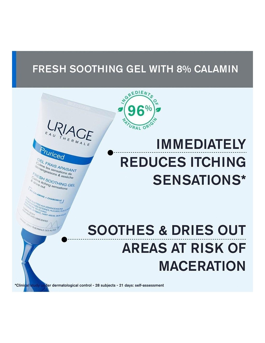 Este gel no graso y de alta tolerancia calma el picor en las pieles frágiles o irritadas y proporciona una inmediata sensación de frescura. El gel, enriquecido con Agua Termal de Uriage y calamina, calma eficazmente la sensación de hormigueo y la tirantez.