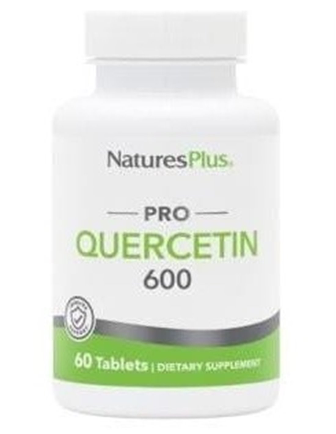 Pro Quercetina 600 mg de Nature's Plus es un complemento alimenticio de quercetina de origen vegetal, en forma dihidrato que favorece su biodisponibilidad. La quercetina es un flavonoide que se encuentra en una gran variedad de vegetales, frutas y plantas medicinales.NaturesPlus ha conseguido concentrar 600 mg de quercetina pura en 1 solo comprimido. Generalmente se aconseja su uso en personas adultas de 18 a 50 años.La quercetina refuerza una respuesta inmunitaria saludable y contribuye a la capacidad del cuerpo para mantener la presión arterial dentro de un rango normal.Ingredientes (INCI):Quercetina (quercetina dihidrato). Agente de carga (celulosa microcristalina), quercetina dihidrato, antiaglomerantes (ácido esteárico, dióxido de silicio), gelificantes (hidroxipropilmetilcelulosa, celulosa vegetal).Modo de empleo:Tomar 1 comprimido al día.Presentación:Envase de 60 comprimidos.Recomendaciones y advertencias:Producto vegano. No contiene vegano. No GMO. No recomendada en niños menores de 10 años, mujeres embarazadas, mujeres en periodo de lactancia, debido a la falta de estudios toxicológicos que confirmen su seguridad.