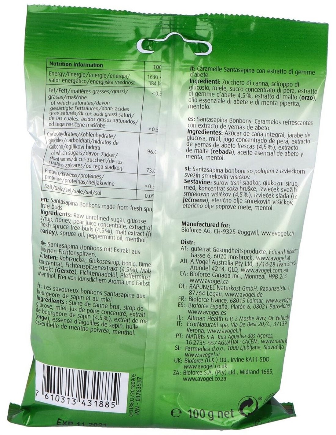 Caramelos refrescantes con extracto de yemas de abeto que contribuyen al bienestar de la garganta.