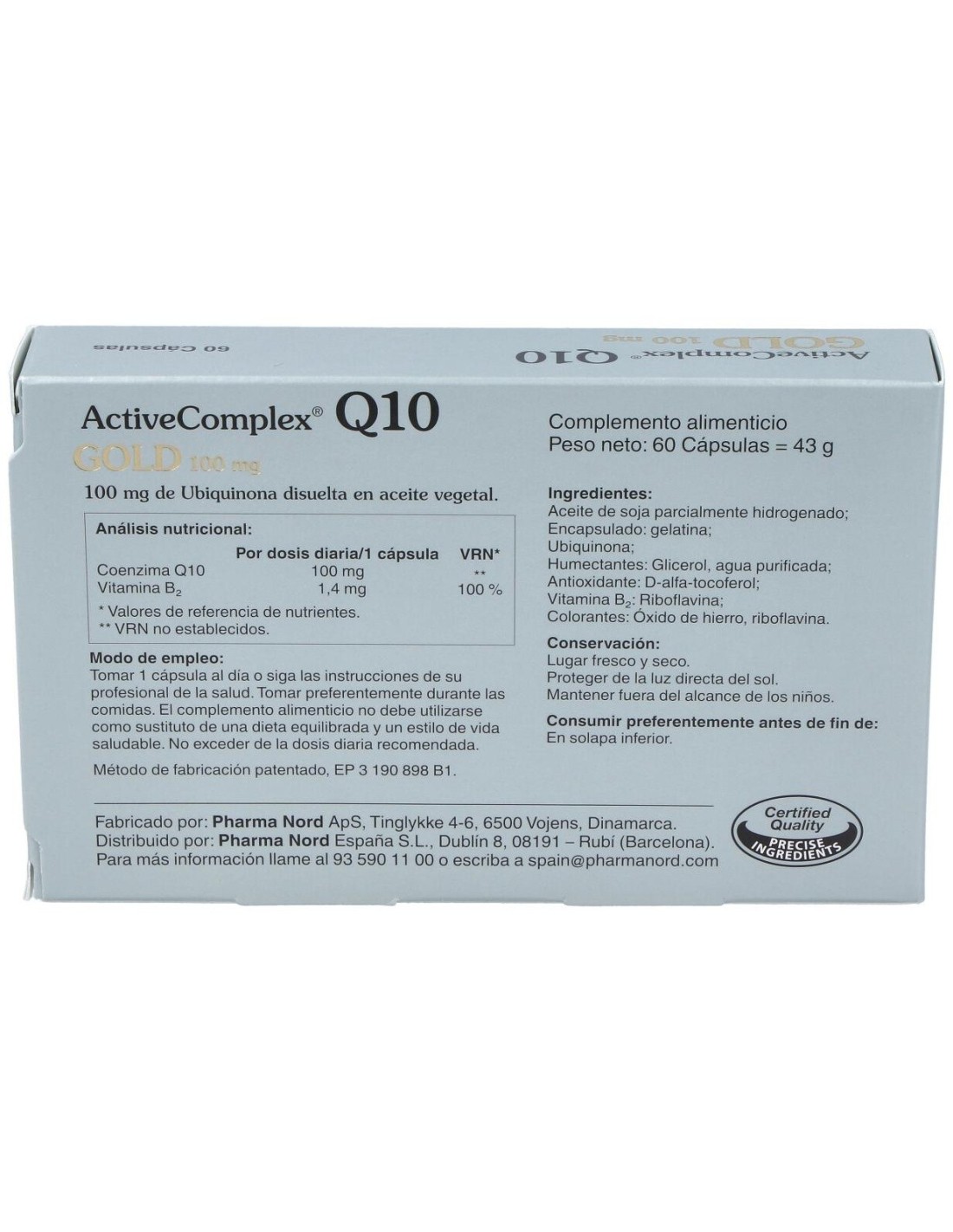 PHARMA NORDActivecomplex Q10 Gold 100Mg. 60Cap. de Pharma Nord: Características y Beneficios Exclusivos