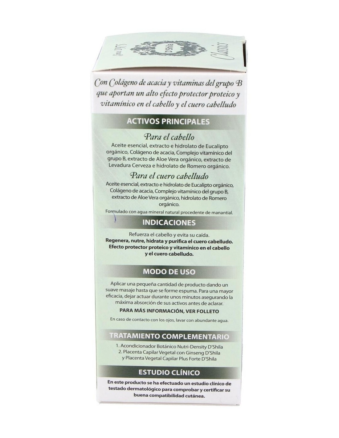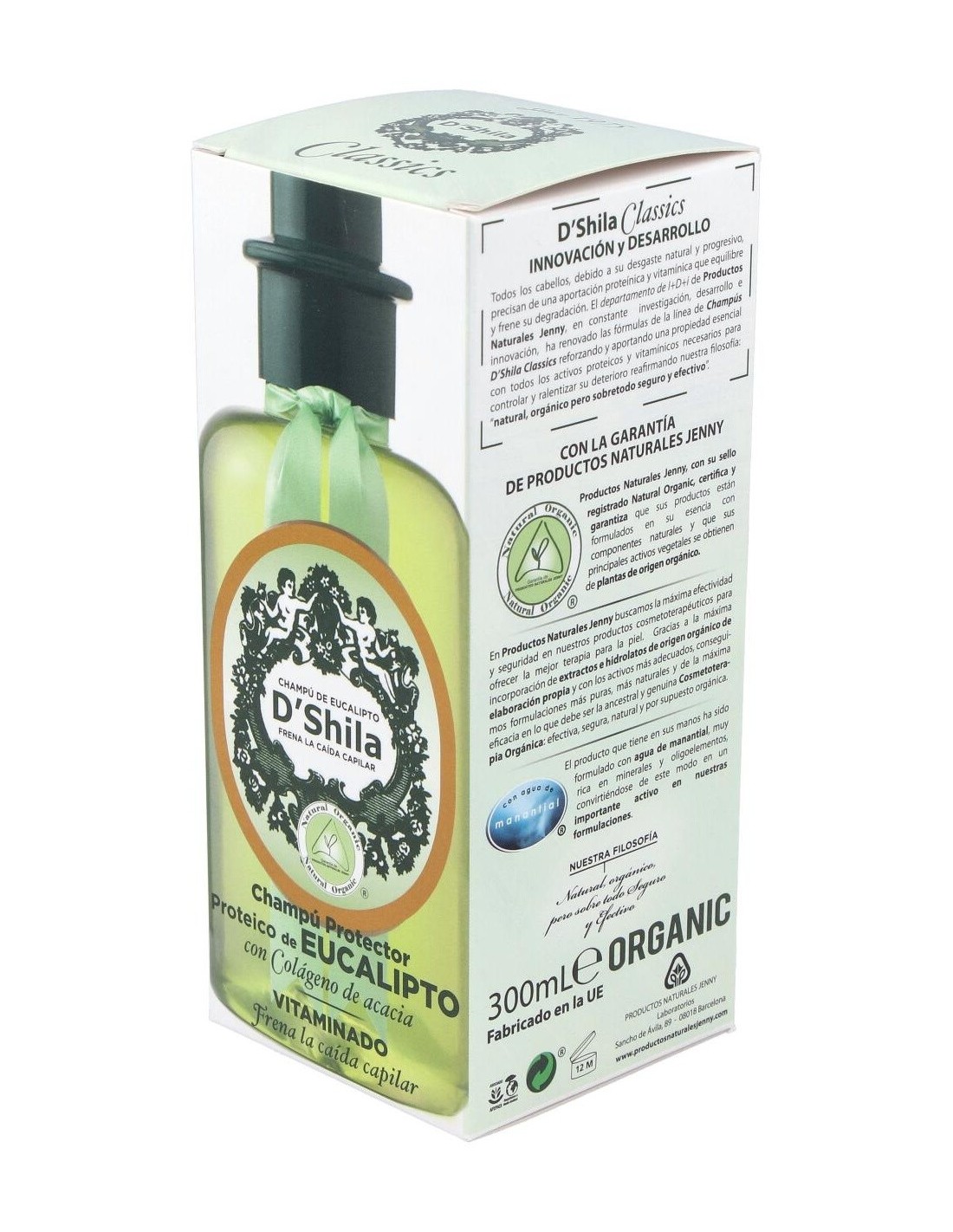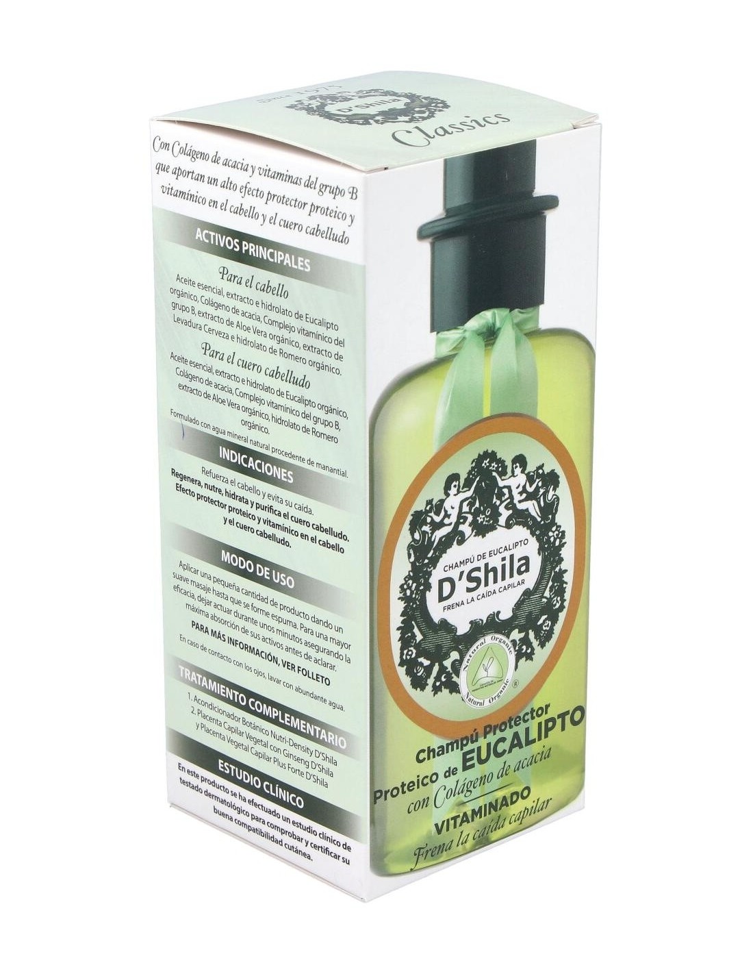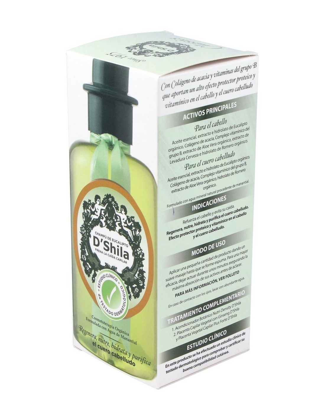 Para el cuero cabelludo: Aceite esencial, extracto e hidrolato de Eucalipto orgánico, Colágeno de acacia, Complejo vitamínico del grupo B, extracto de Aloe Vera orgánico, hidrolato de Romero orgánico.