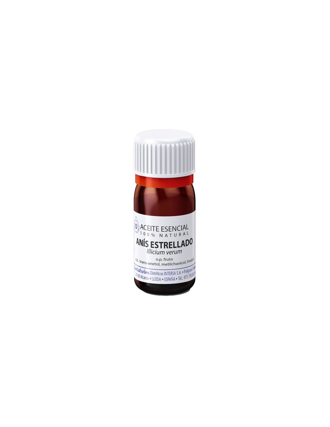 Ingredientes:Aceite esencial de anis estrellado (Illicium verum).Modo de empleo:Por ingestión: Tomar 1 gota de aceite esencial de 1 a 3 veces al día mezclada en una cucharadita de café de aceite de oliva. Pueden disolverse también en una aceite vegetal alimenticio a razón de 30 gotas por 30 ml de aceite vegetal y tomar 1 ml de la mezcla 3 veces al día.Cosmético: Diluir 1 gota de aceite esencial por cada 2 ml de aceite portador (dilución normal) en un frasco. Agitar enérgicamente la mezcla para asegurar la homogeneización de la mezcla. Aplicar a continuación realizando un masaje.Presentación:Envase de 10 ml.Recomendaciones y advertencias:No contiene parabenes, parafina, sulfatos ni productos químicos.