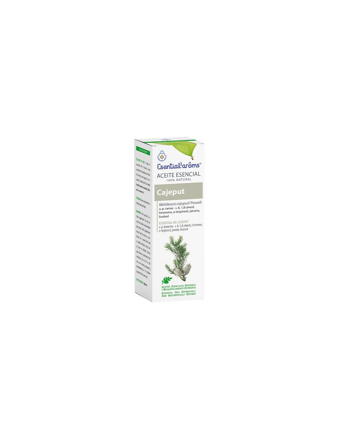 Ingredientes:Aceite esencial de Cajeput (Melaleuca cajeputi leaves oil).Modo de empleo:Por ingestión: Tomar 1 gota de aceite esencial de 1 a 3 veces al día mezclada en una cucharadita de café de aceite de oliva. Pueden disolverse también en un aceite vegetal alimenticio a razón de 30 gotas por 30 ml de aceite vegetal y tomar 1 ml de la mezcla 3 veces al día.Cosmético: Diluir 1 gota de aceite esencial por cada 2 ml de aceite portador (dilución normal) en un frasco. Agitar enérgicamente la mezcla para asegurar la homogeneización de la mezcla. Aplicar a continuación realizando un masaje.Presentación:Envase de 10 ml.Recomendaciones y advertencias:No contiene parabenes, parafina, sulfatos ni productos químicos.