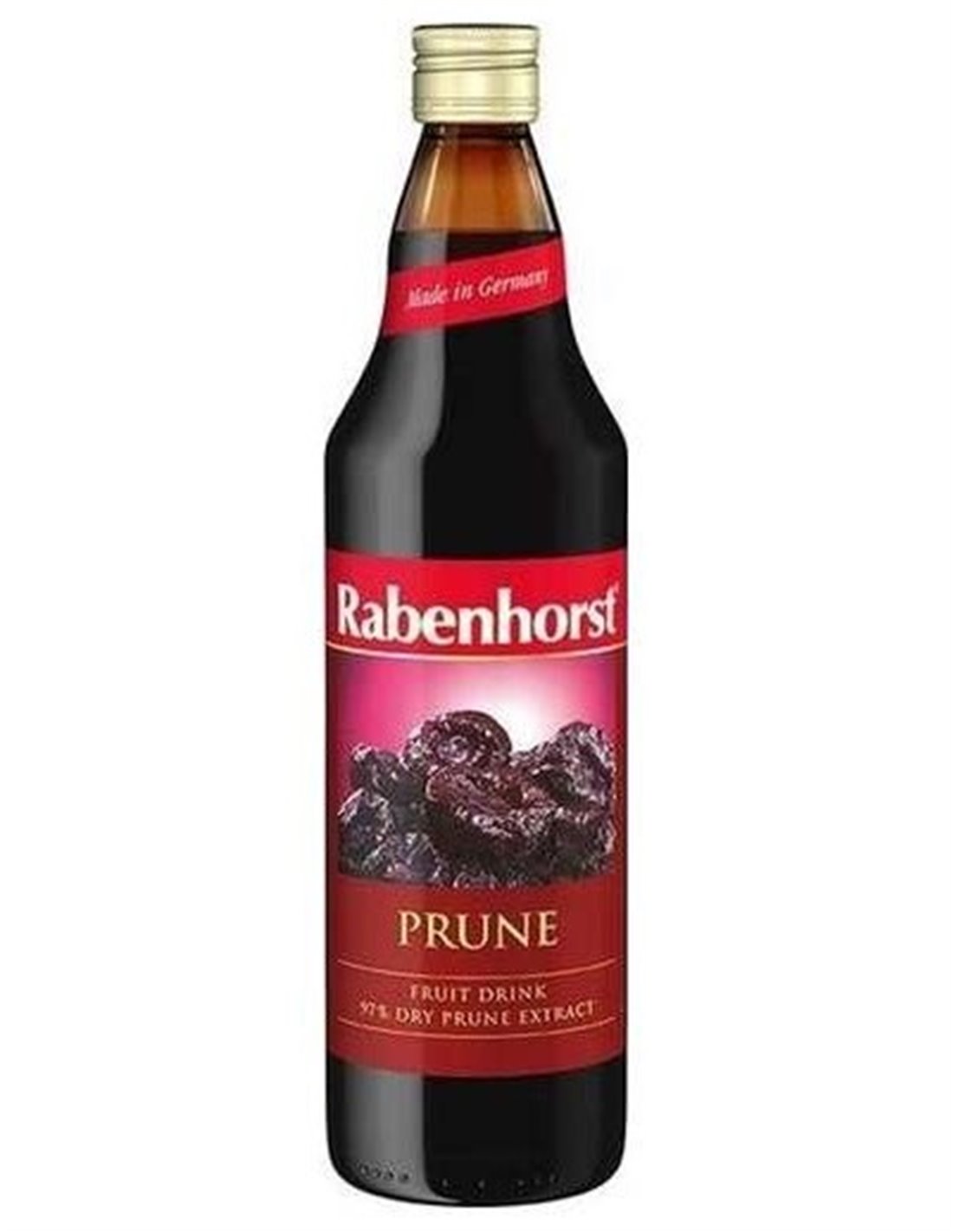 Bebida de fruta elaborada con un 97% de extracto de ciruela seca.Inmediatamente después de la recolección, las ciruelas cuidadosamente seleccionadas se secan, se procesan y se embotellan cuidadosamente en la casa Rabenhorst, empleando técnicas tradicionales libres de azufre. El resultado es una nutritiva bebida de fruta.
