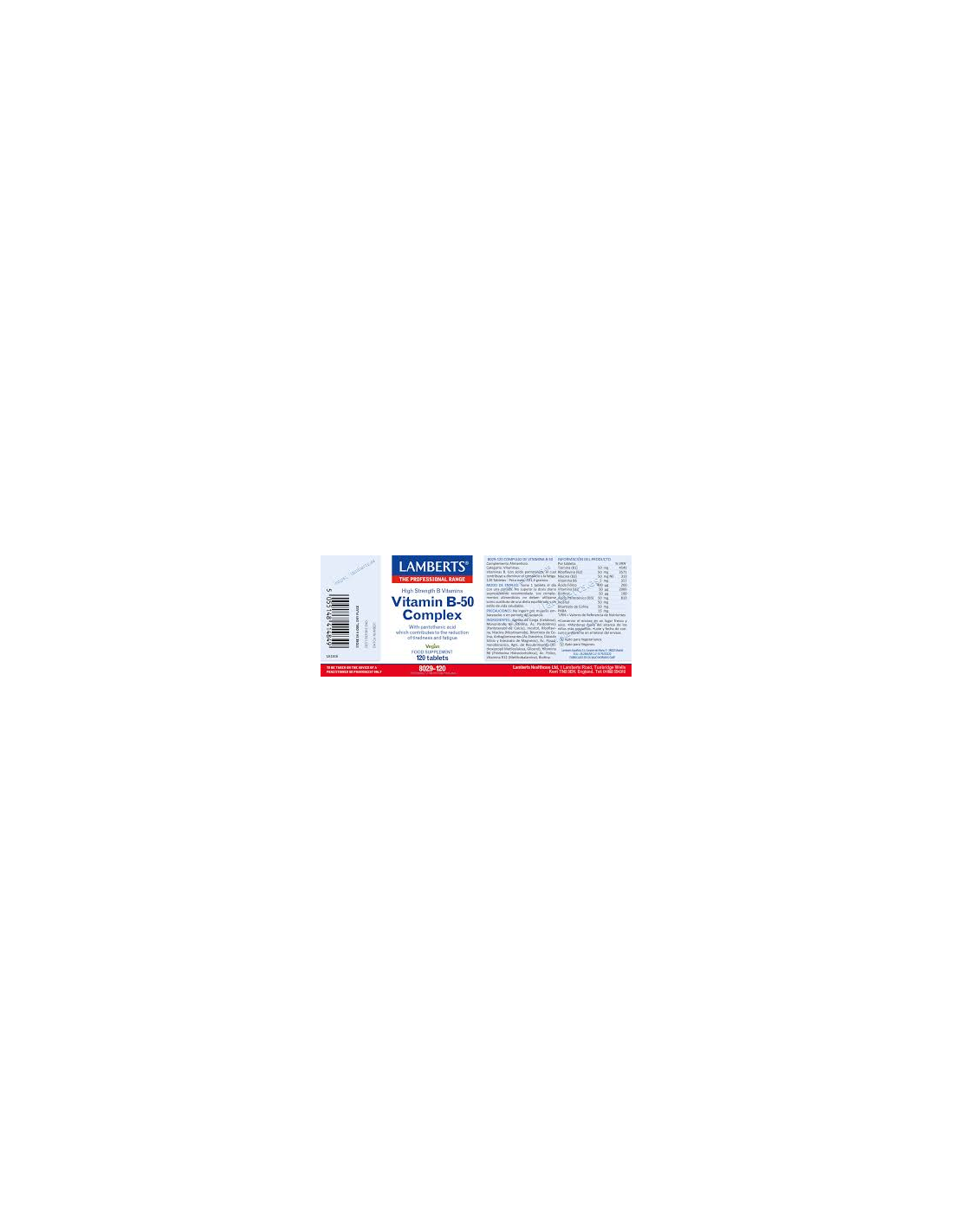 LAMBERTSCaracterísticas y Beneficios del Complejo de Vitaminas B-50 120 Tabs. de Lamberts