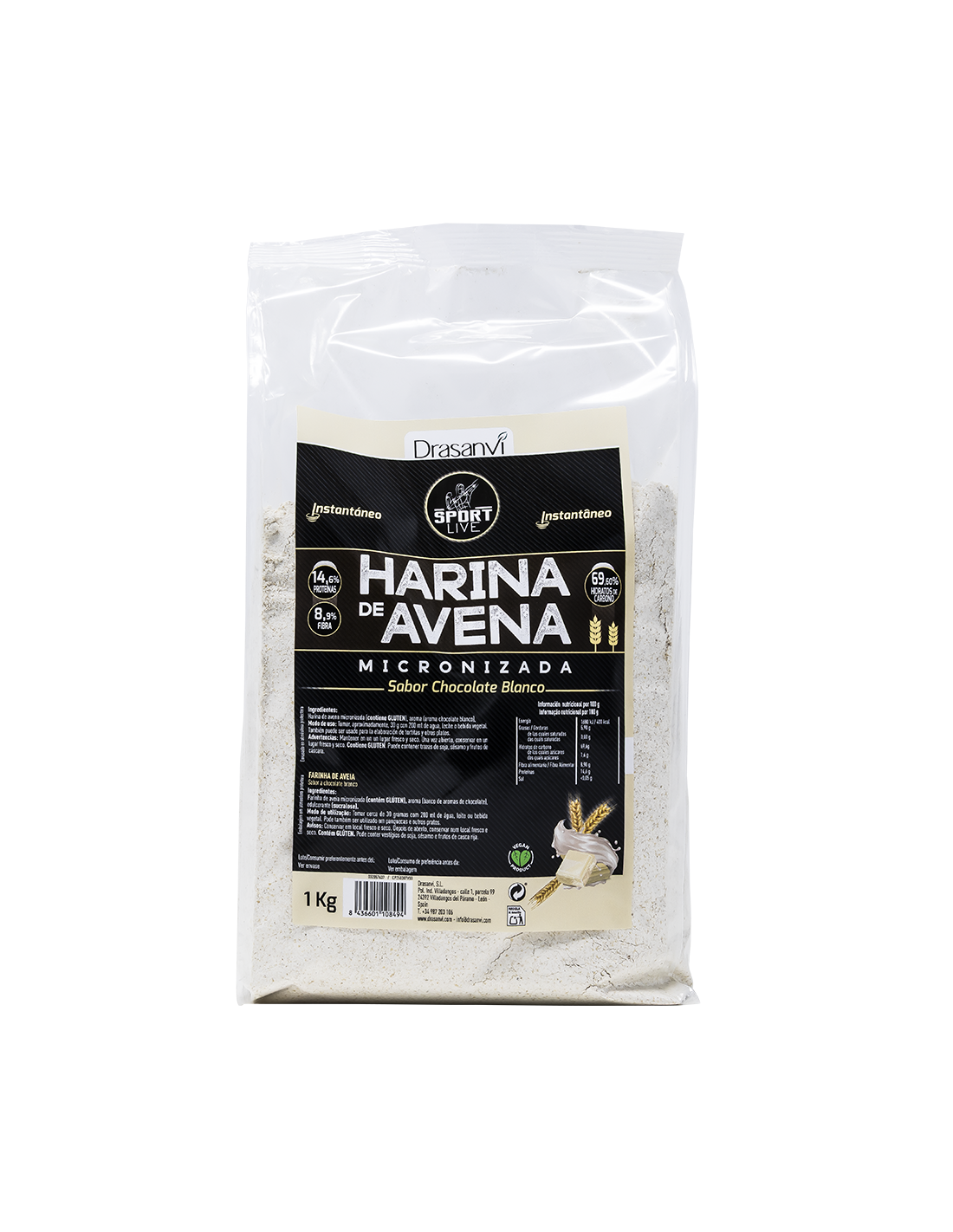 DRASANVI SPORT LIVECaracterísticas y Beneficios de Harina Avena Sabor Chocolate Blanco 1Kg Sport Live Drasanvi