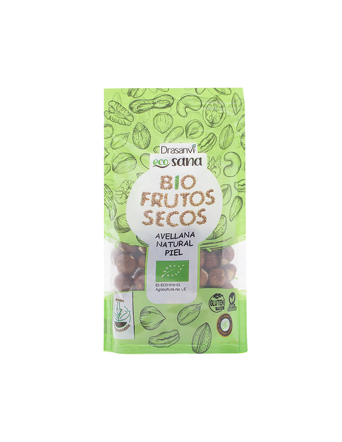 ECOSANA DRASANVICaracterísticas y Beneficios Exclusivos de Avellana Natural Piel Bio 100G Doypack Frutos Secos Ecosana