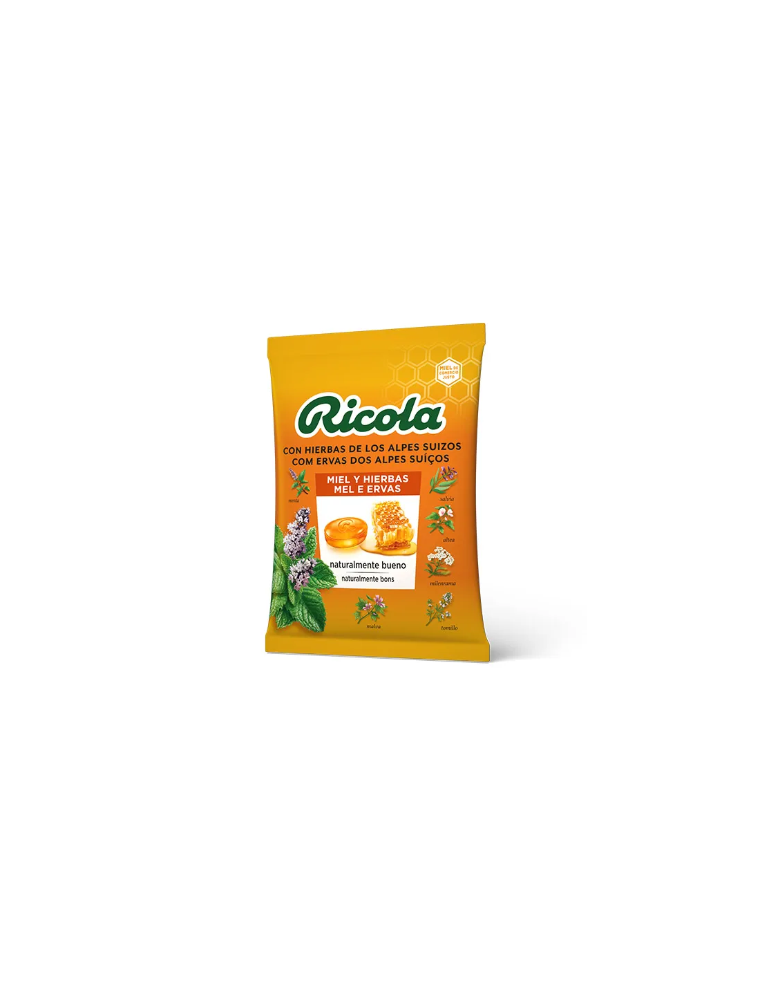 Disfruta el sabor natural y reconfortante de la Bolsa Miel y Hierbas de RICOLA. Cada caramelo combina la dulzura suave de la miel con una mezcla única de hierbas suizas, ofreciendo un alivio refrescante para la garganta y una sensación de bienestar. Perfecto para llevar contigo y disfrutar en cualquier momento del día. RICOLA, tradición y calidad en cada dulce.
