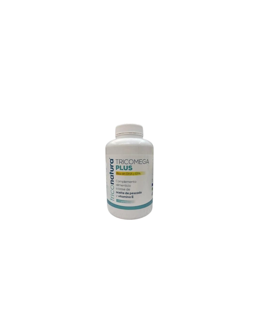 Triconatura Tricomega Plus, rico en DHA y EPA. Complemento alimenticio a base de aceite de pescado y vitamina E.