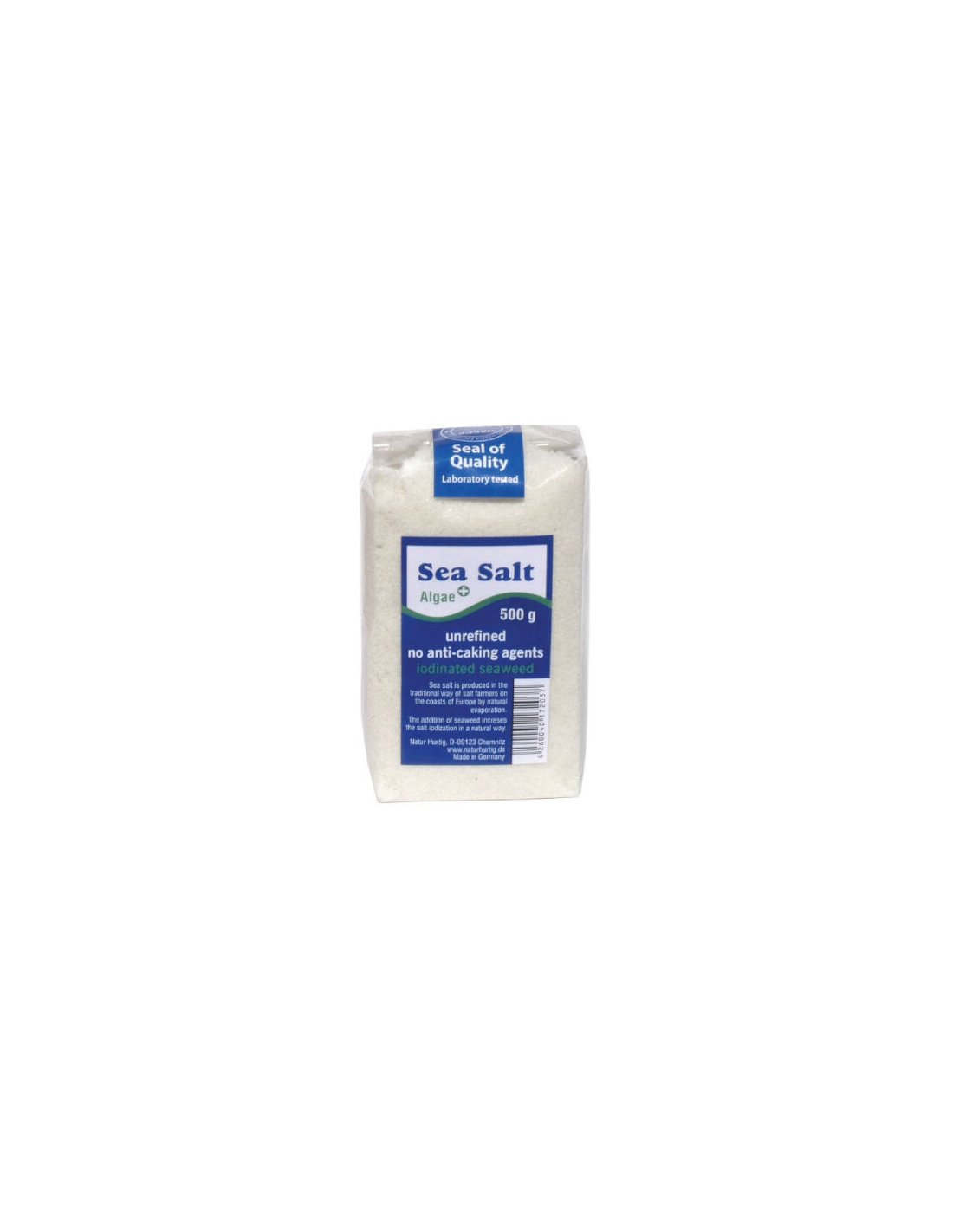Sal marina natural fina, con algas marinas ricas en yodo, 500g de Natur Hurtig