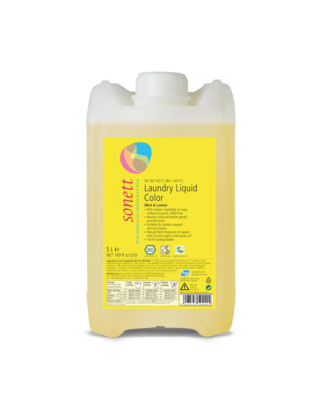 SONETTDetergente líquido ropa color, 5L de Sonett: Características y Beneficios Exclusivos