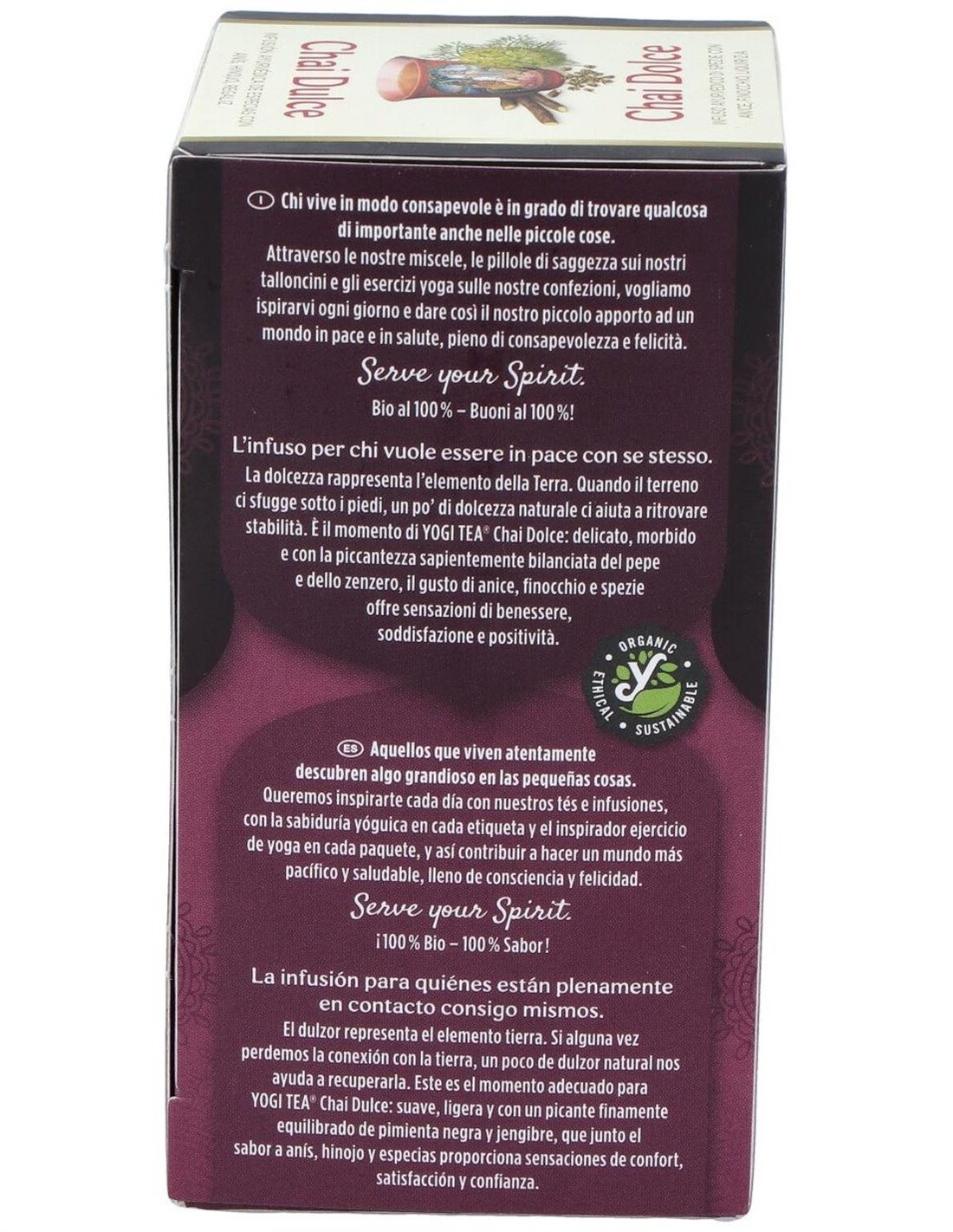 Yogi Tea Chai Dulce 17 X 2 G ofrece una combinación equilibrada de especias y dulzura que aporta variedad y sabor a la rutina diaria del té.