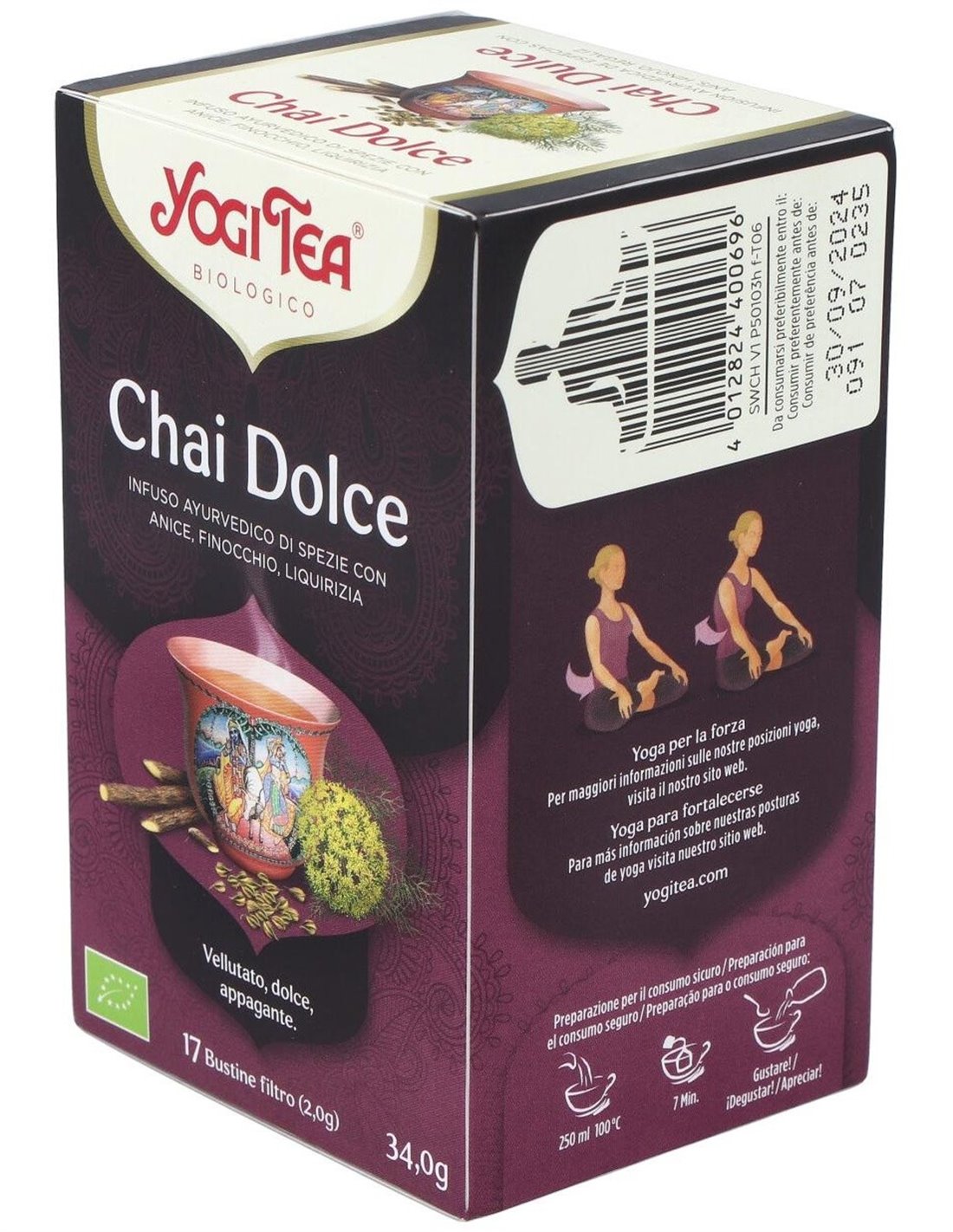 Yogi Tea Chai Dulce 17 X 2 G de Yogi Tea es una mezcla de infusiones diseñada para quienes buscan una experiencia de té aromática y equilibrada. Ideal para quienes disfrutan de sabores especiados con un toque dulce, ofrece una opción práctica para preparar en cualquier momento del día.