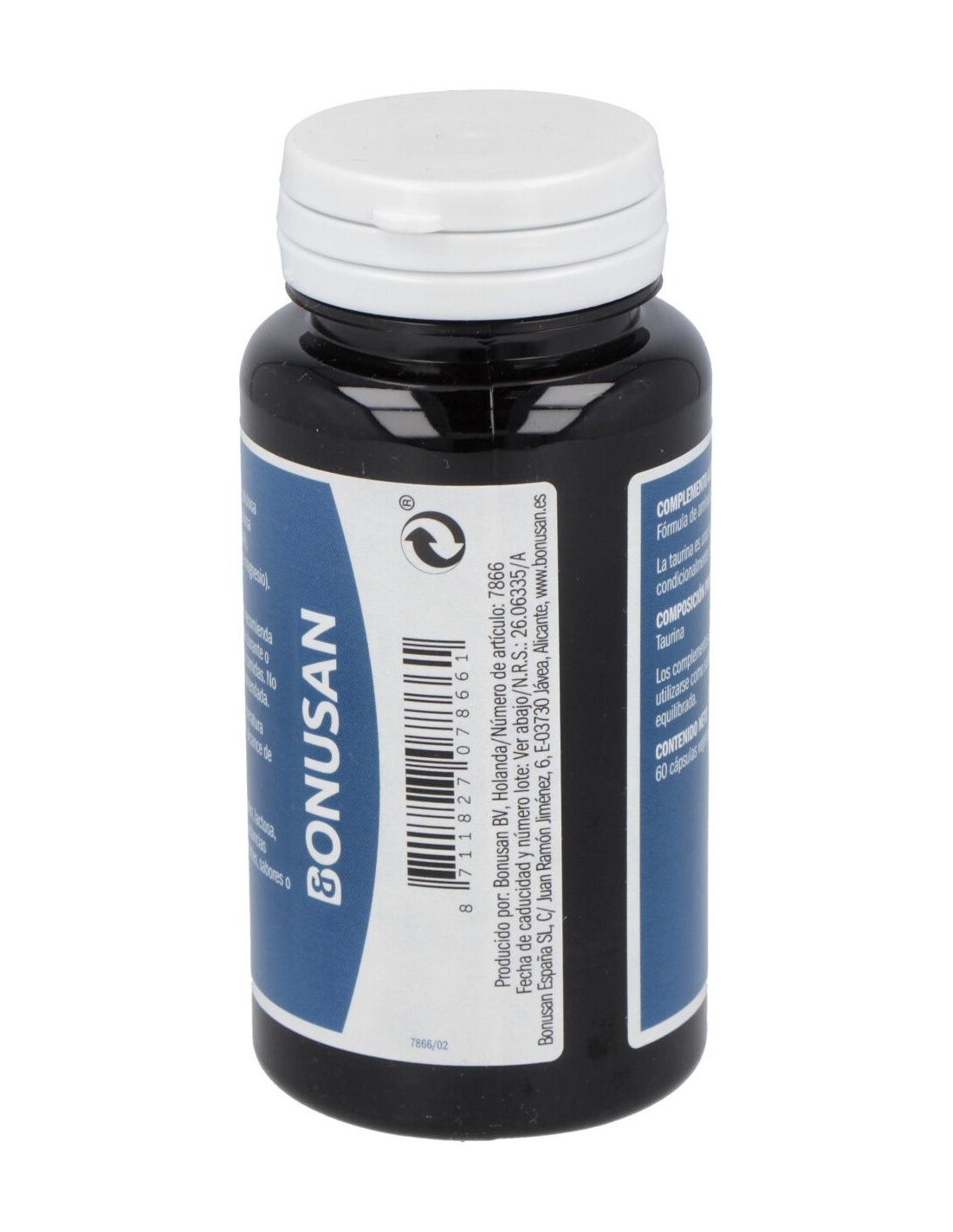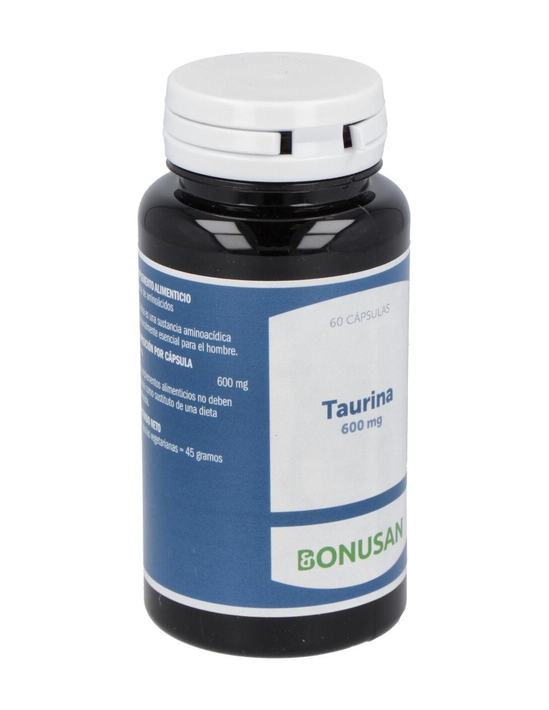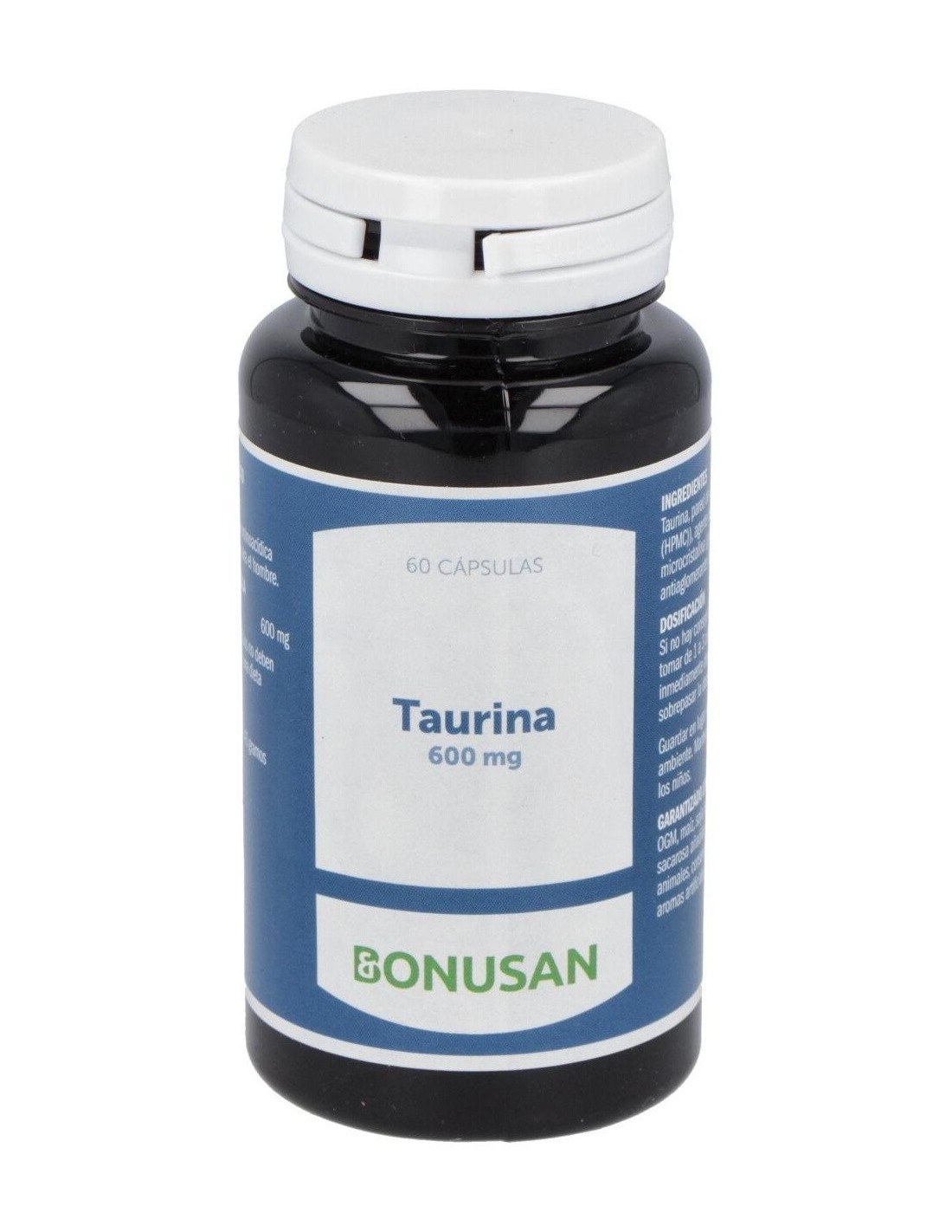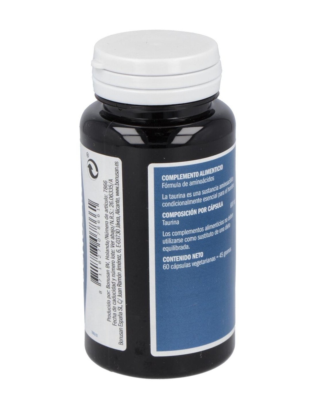 En el cuerpo humano, la taurina se produce principalmente en los tejidos que tienen que responder con frecuencia a los estímulos, tales como la retina, el corazón y los músculos esqueléticos. Debido a que la taurina se encuentra sólo en carne, pescado y mariscos, este suplemento se recomienda especialmente a los vegetarianos y veganos. Para obtener los mejores resultados, Bonusan ha incorporado más de 600 mg de taurina pura en este producto. La ingesta media alimentaria de la taurina es justo un poco más baja, entre 0 y 400 mg al día. Bonusan formula y produce sus propios suplementos según los últimos avances científicos. Nuestra moderna fábrica garantiza una óptima seguridad y eficacia en todos nuestros productos.Ingredientes por cápsula:600 mg de taurina.Modo de empleo:Tomar entre 1 y 3 cápsulas al día.Presentación:Bote de 60 cápsulas.