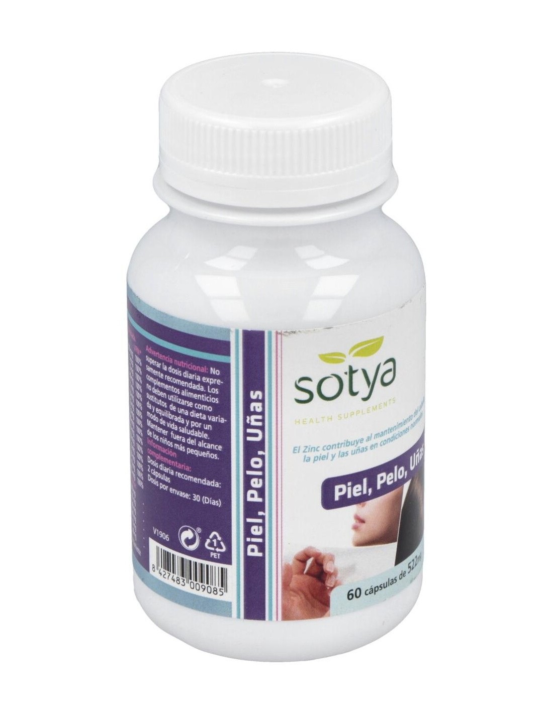 Piel, Pelo, Uñas 522Mg Cáps. 60U de Sotya es un suplemento diseñado para personas que buscan apoyar el cuidado integral de su piel, cabello y uñas mediante una fórmula equilibrada. Está indicado para quienes desean complementar su rutina diaria con nutrientes específicos que contribuyen a mantener estas estructuras en condiciones saludables.