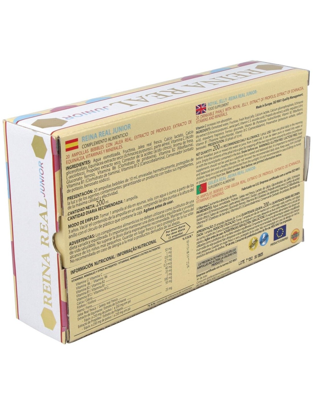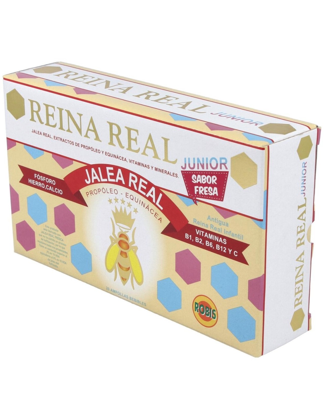 El Reina Real Junior 20Amp. de Robis es un suplemento nutricional para niños que apoya su desarrollo diario mediante una fórmula equilibrada y adecuada para sus necesidades.