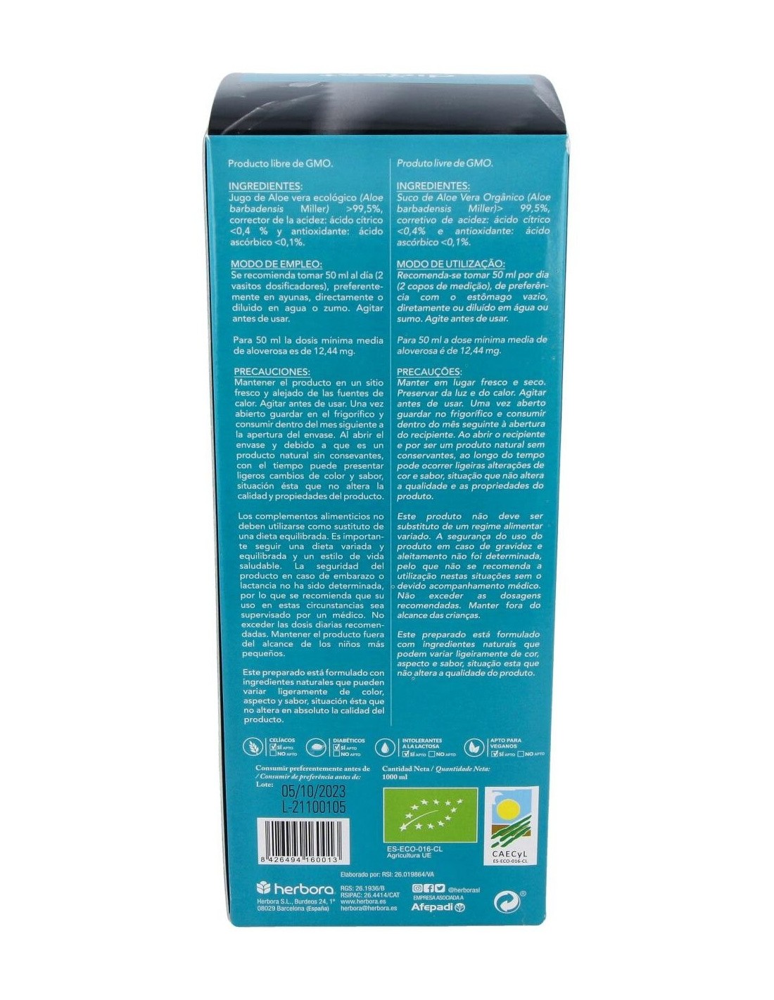 El Aloe Vera Bio de Herbora es un suplemento natural para personas que buscan apoyar su bienestar diario, elaborado con extracto orgánico de aloe vera que contribuye a la hidratación y cuidado interno.