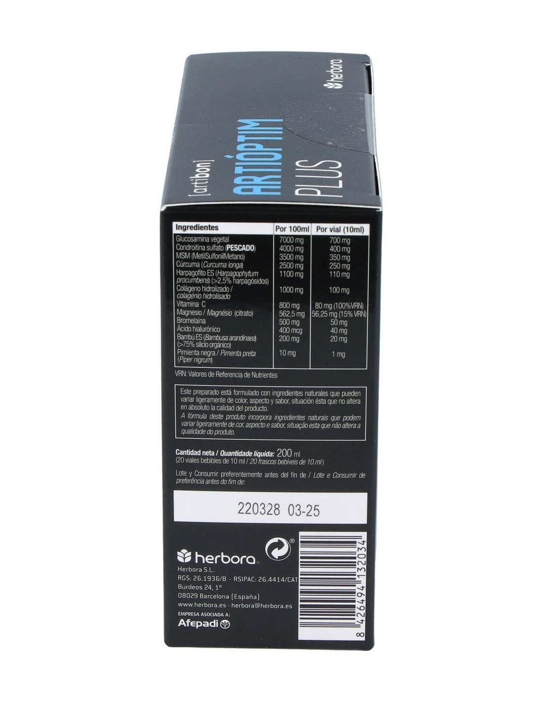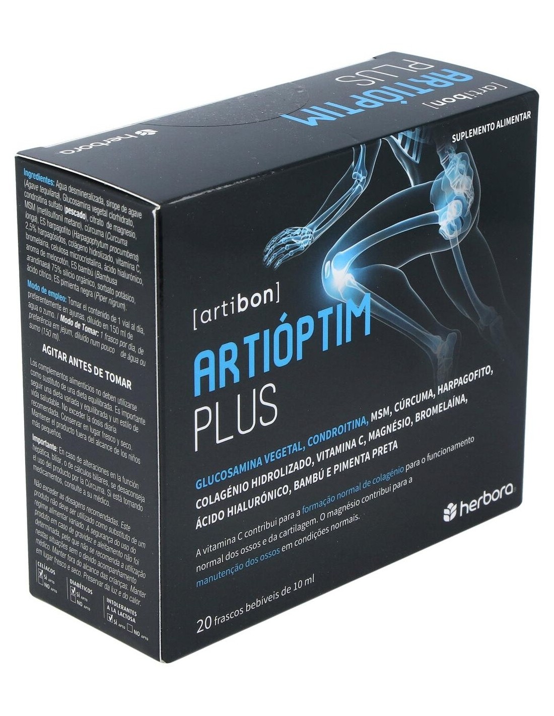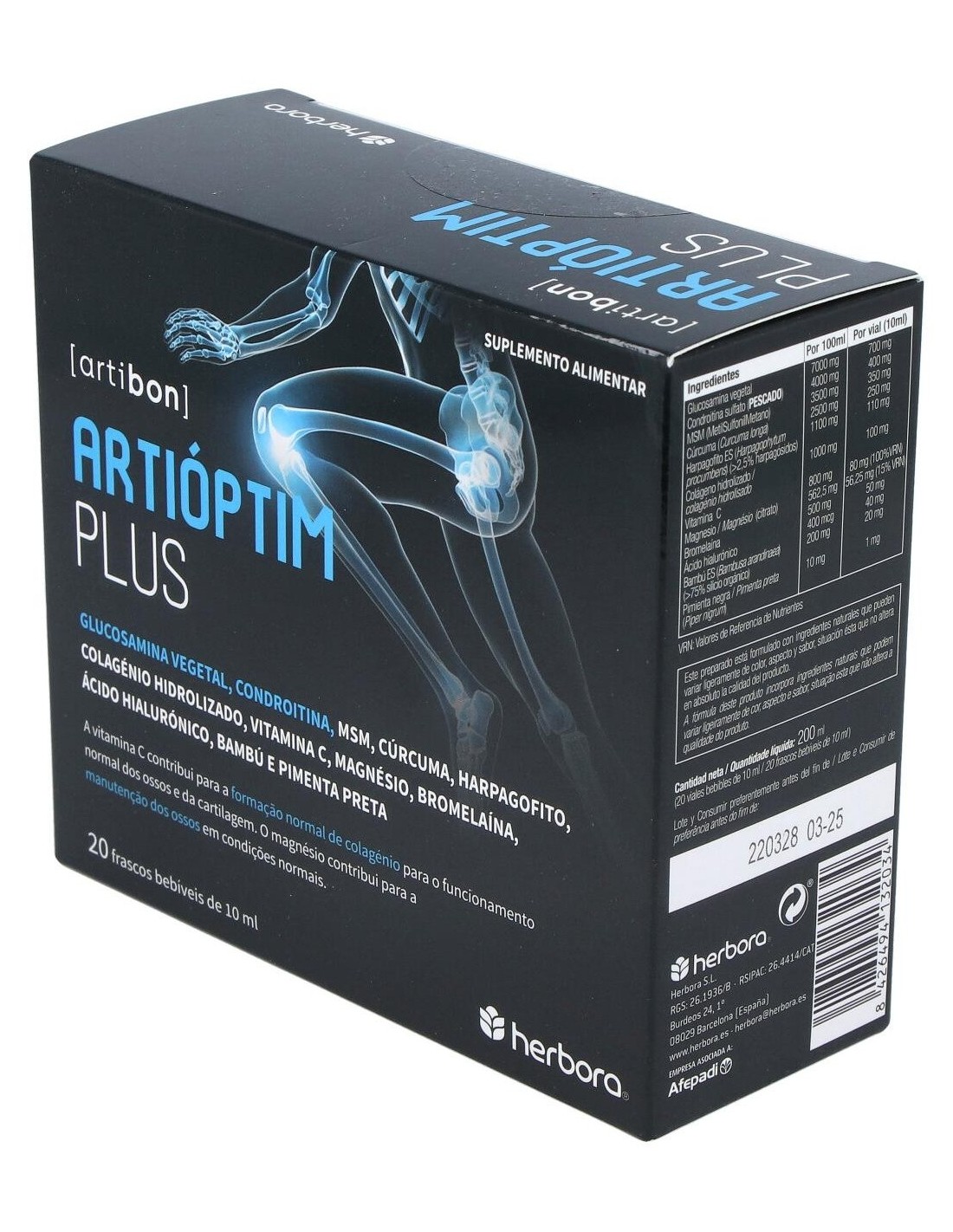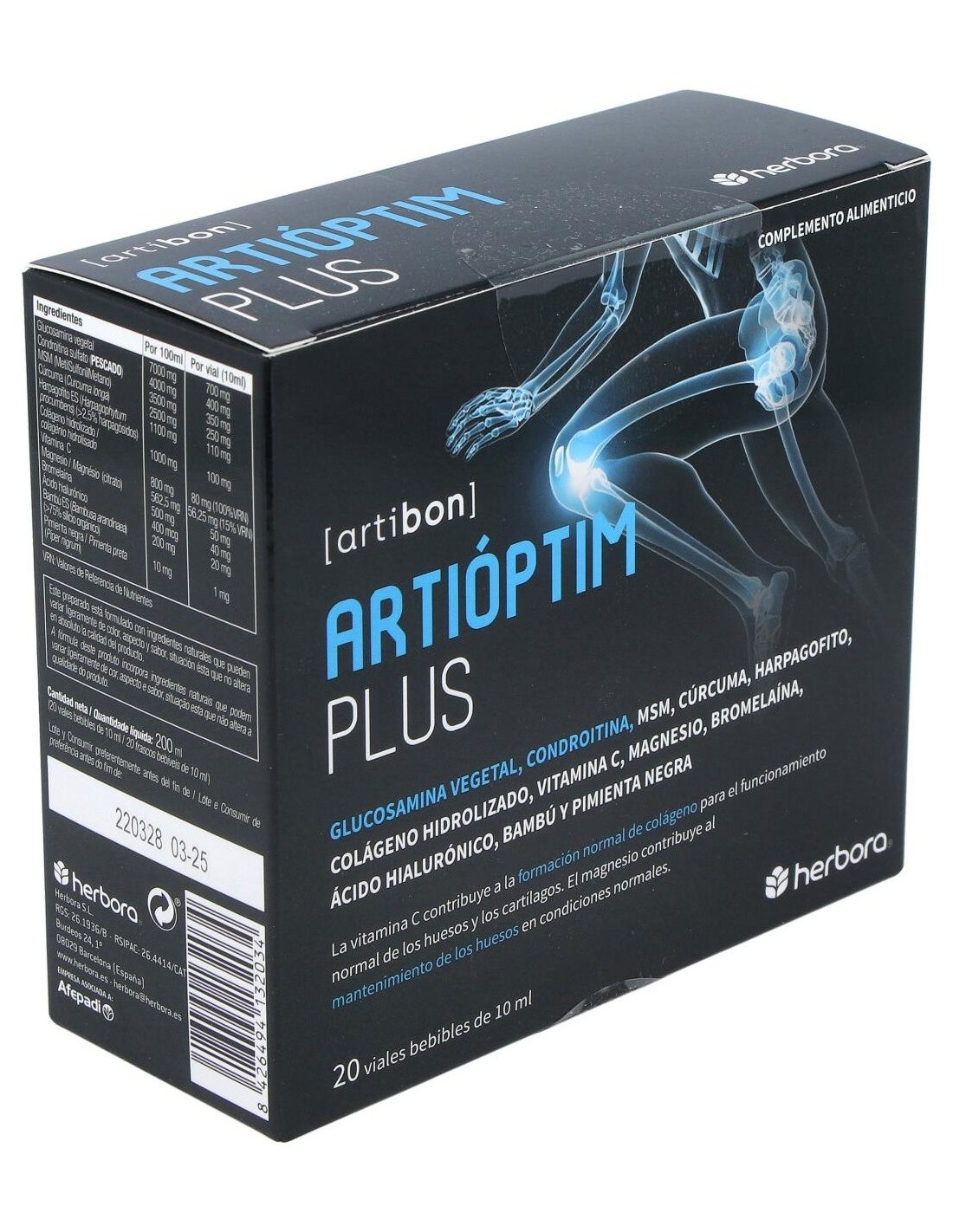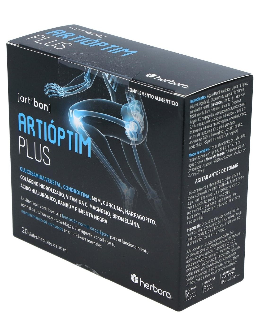 Artioptim Plus 20 Viales de Herbora es un complemento natural para personas que buscan apoyar el bienestar articular, formulado con ingredientes que contribuyen a la movilidad y confort gracias a su combinación específica.