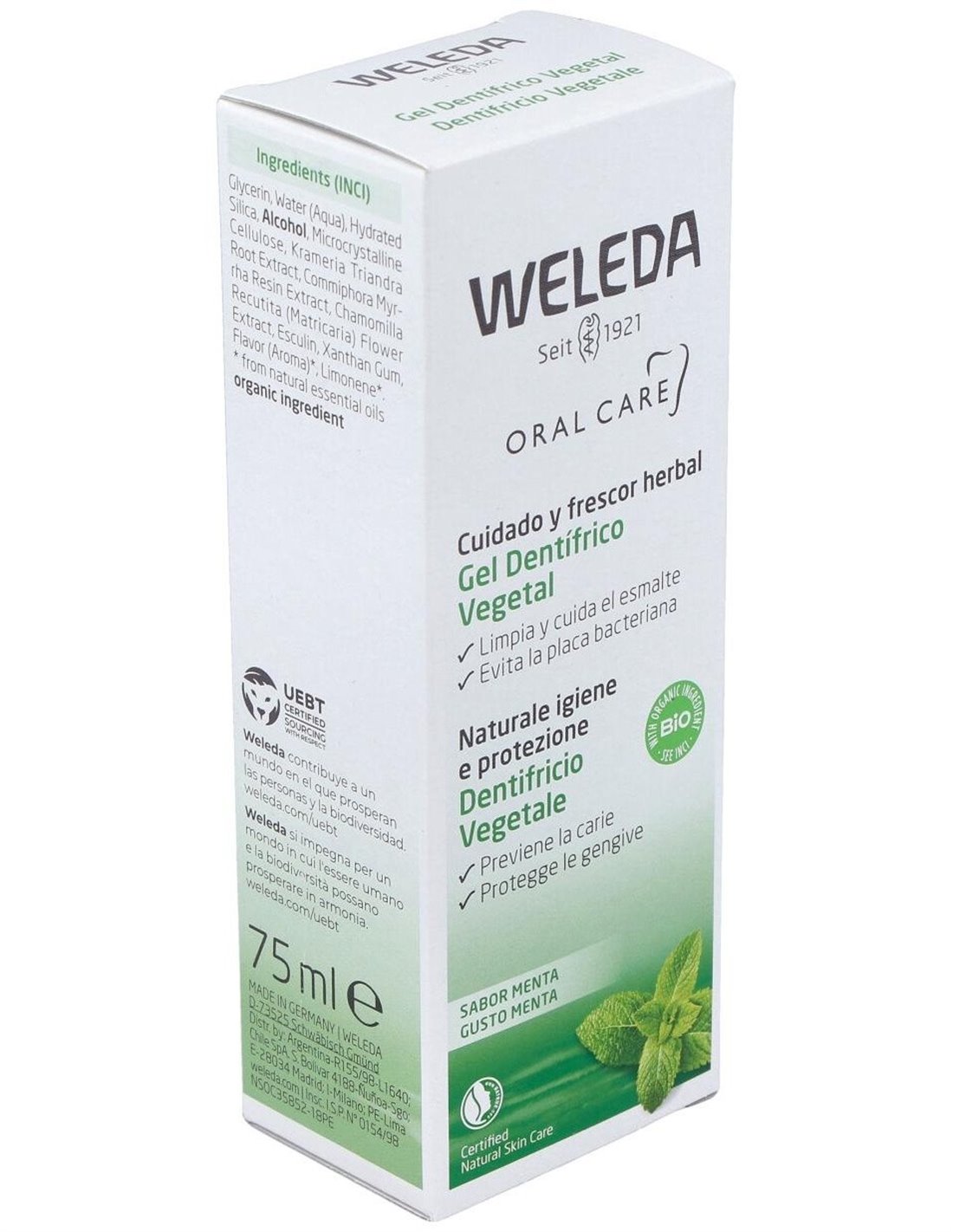 El Gel Dentífrico Vegetal 75ml de Weleda está diseñado para personas que buscan una higiene bucal diaria con ingredientes de origen natural. Su fórmula suave es adecuada para quienes prefieren productos con componentes vegetales que cuidan la boca sin agredir el esmalte ni las encías.